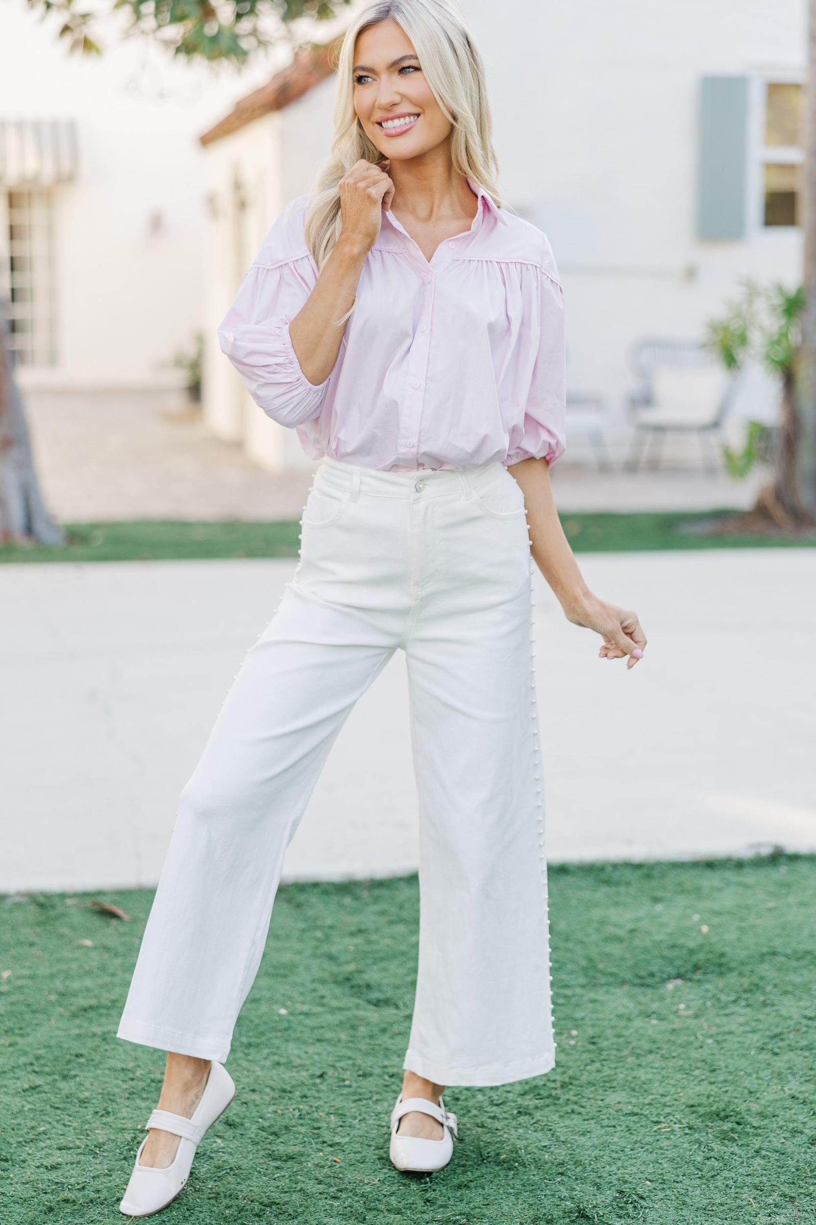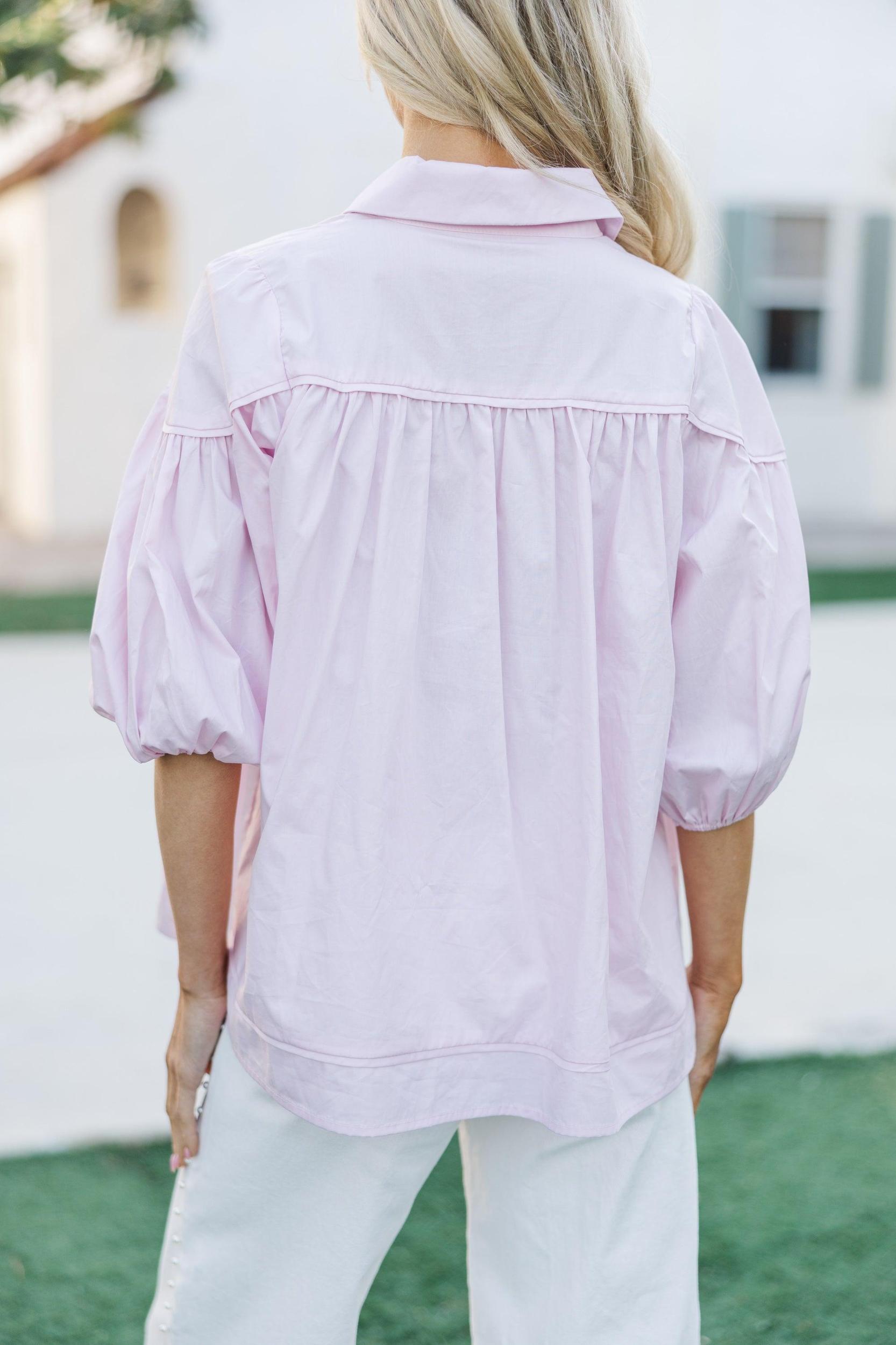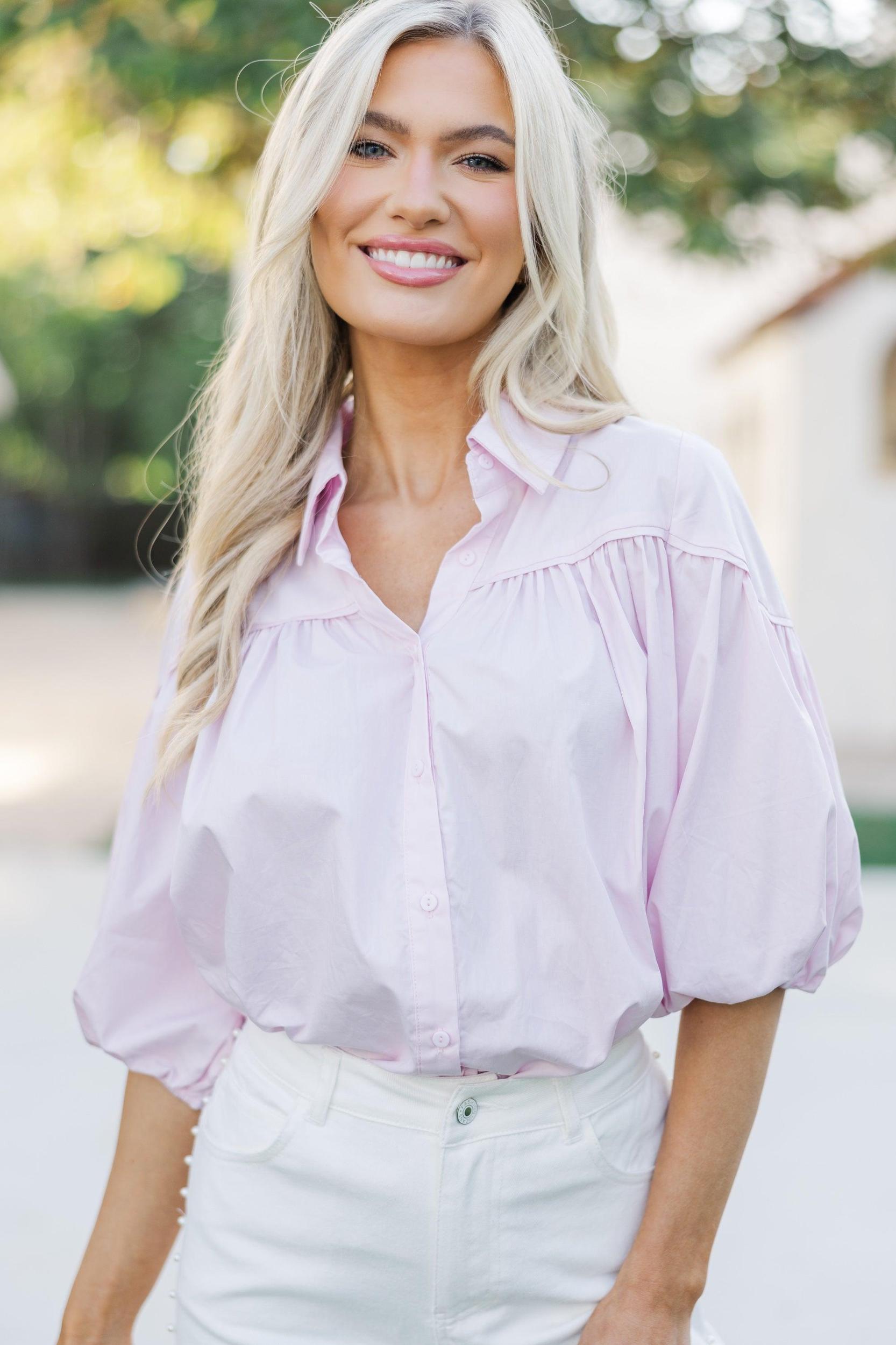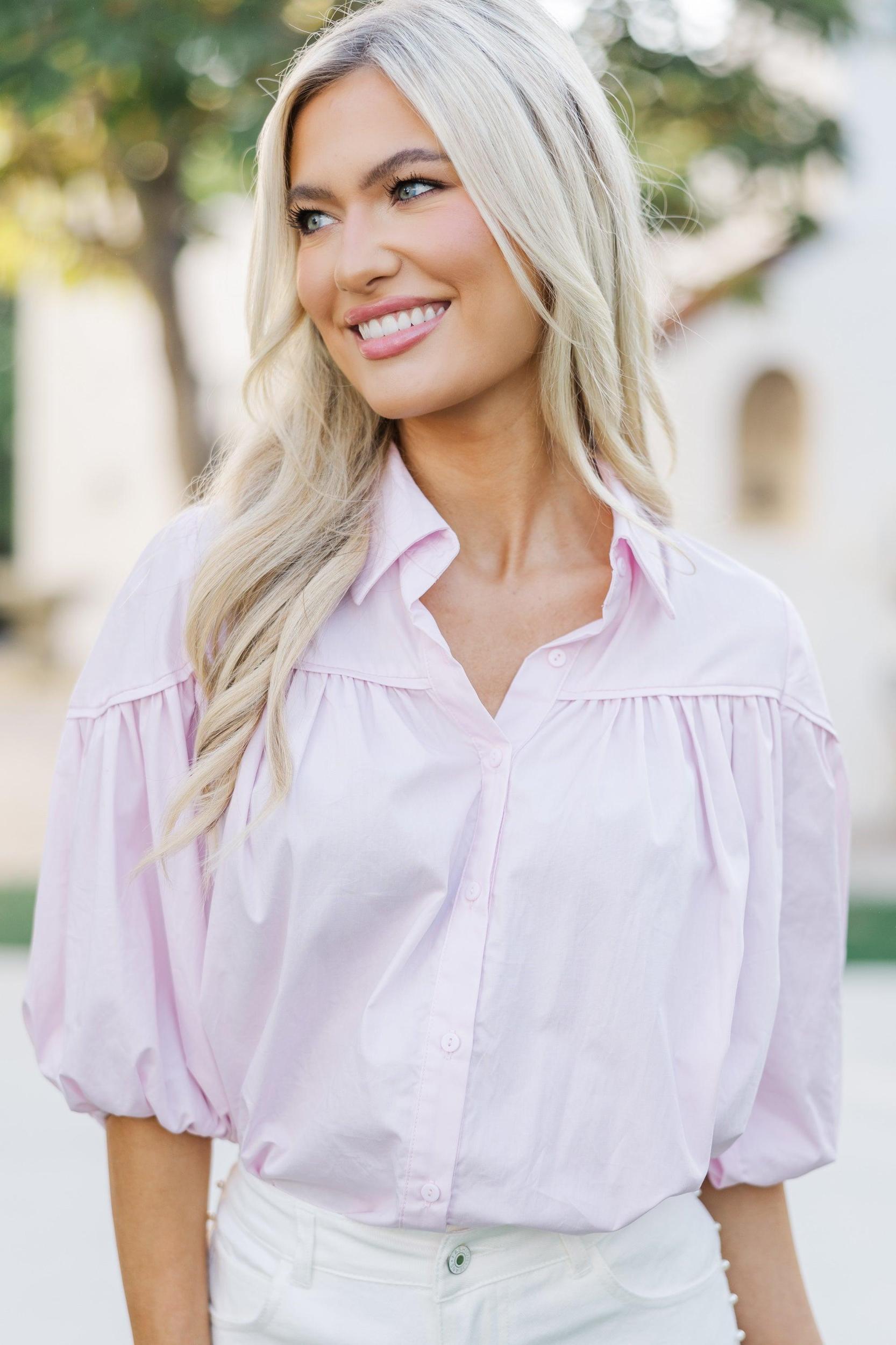 This blouse is even better than you know! That babydoll cut is so comfy and those short bubble sleeves help balance out that silhouette perfectly. This blouse is going to style so well with trousers and mules for work or with shorts and sandals for casual occasions. Collared v-neckline Short bubble sleeves Light babydoll cut Material has no amount of stretch Baileigh is wearing the small.