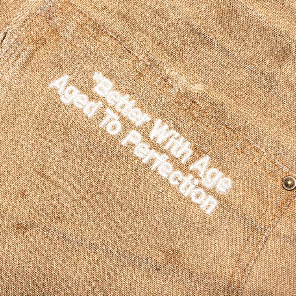 The Better With Age x Carhartt Looks Like You Trouser in Indigo is unique and will be different across all variants and may display stains, blemishes, wear, or general signs of age. These imperfections are representative of the brand's commitment to sustainability and should be worn with pride. THIS PRODUCT DOES NOT QUALIFY FOR DISCOUNTS OR SPECIAL PROMOTIONS, ALL SALES ARE FINAL. Cotton Regular fit Screen printed Better With Age design on left leg Style No: BWACSSHM-MUL-2
