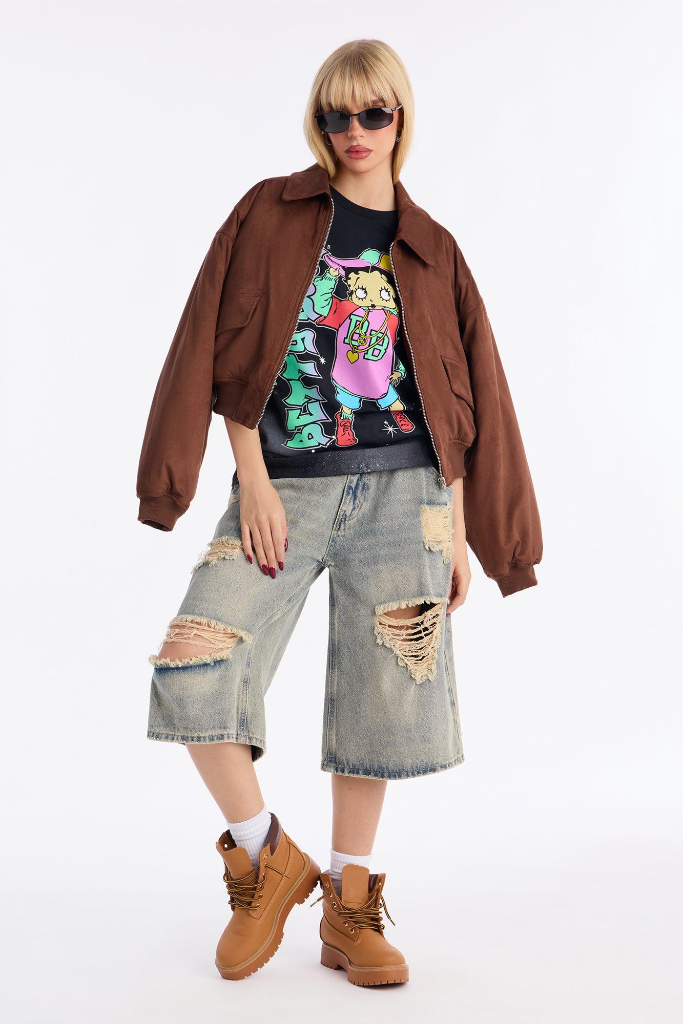 Betty Boop Oversized Graphic Tee - Black