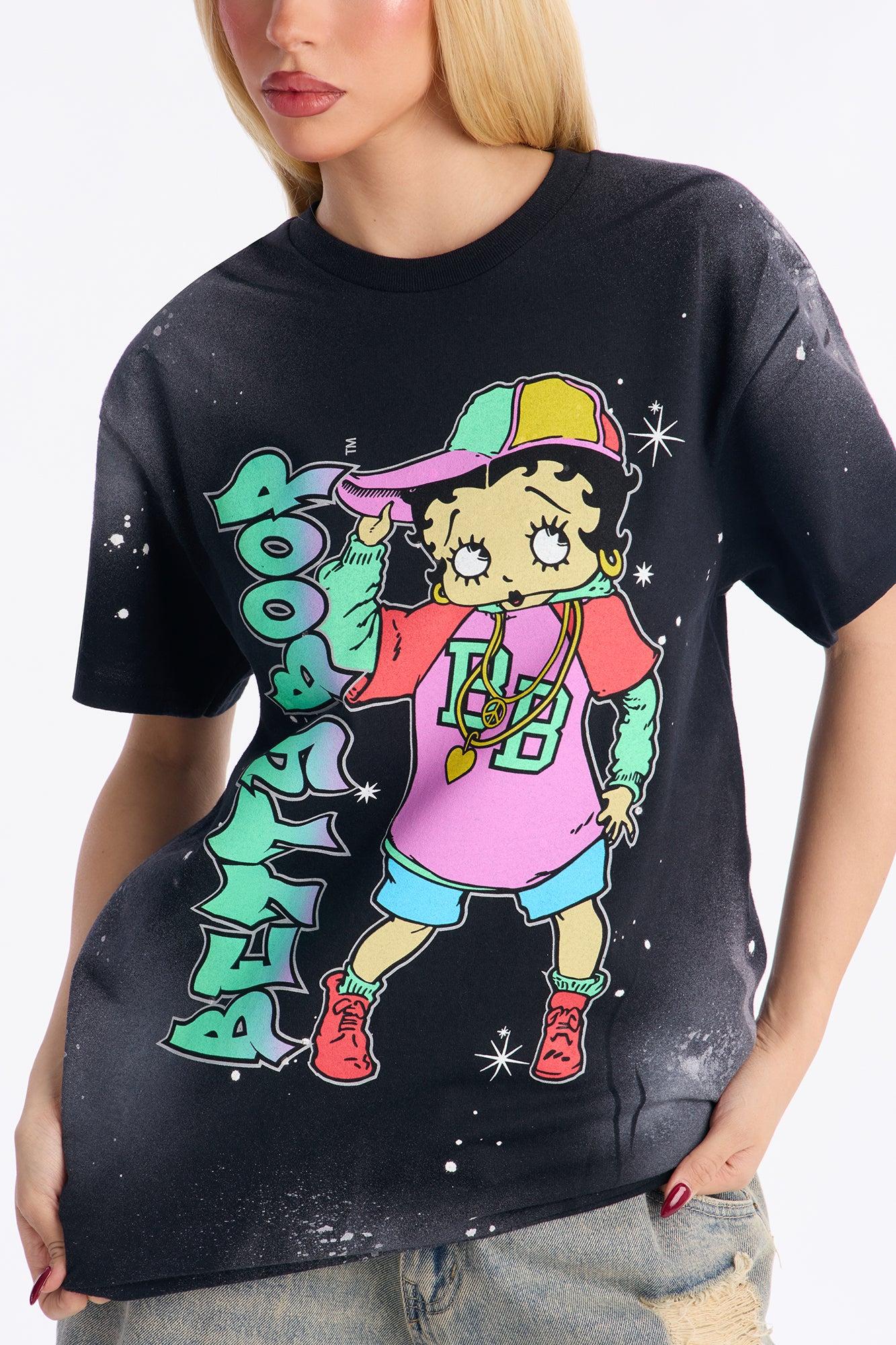 Betty Boop Paint Splatter Tee - Black Wash Female