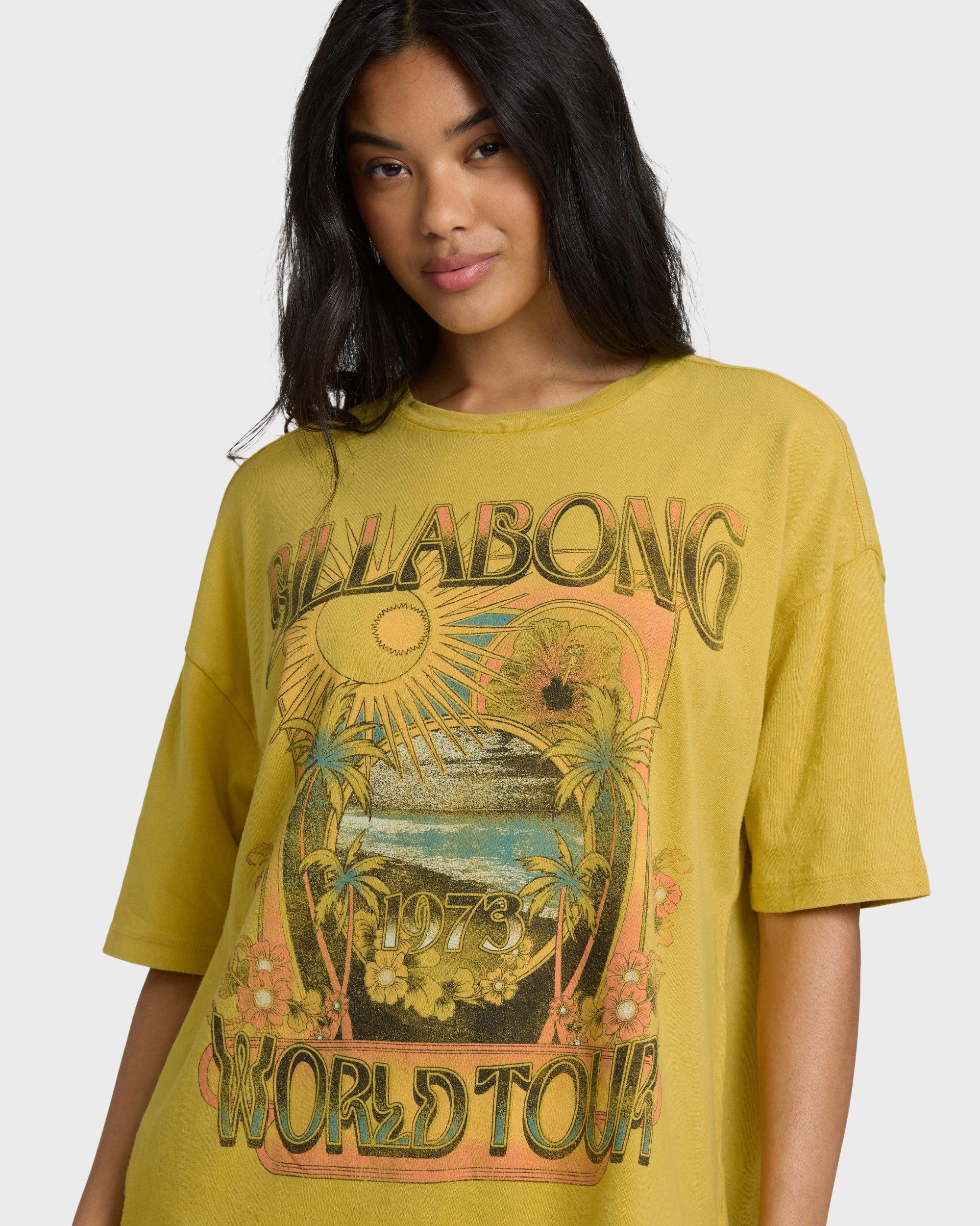 Drift through the day in our oversized Between Night And Dawn Short Sleeve T-Shirt. This true boy tee brings the perfect relaxed vibe with 100% cotton loose knit jersey and pigment dye for that lived-in look. The crew neck and screen print design add just enough detail to keep it interesting. Features Fabric: 100% cotton loose knit jersey, pigment dye Type: True boy tee Fit: Oversized, HPS: 27.5" Features: Crew neck Screen print Collection: Le Surf Le Love