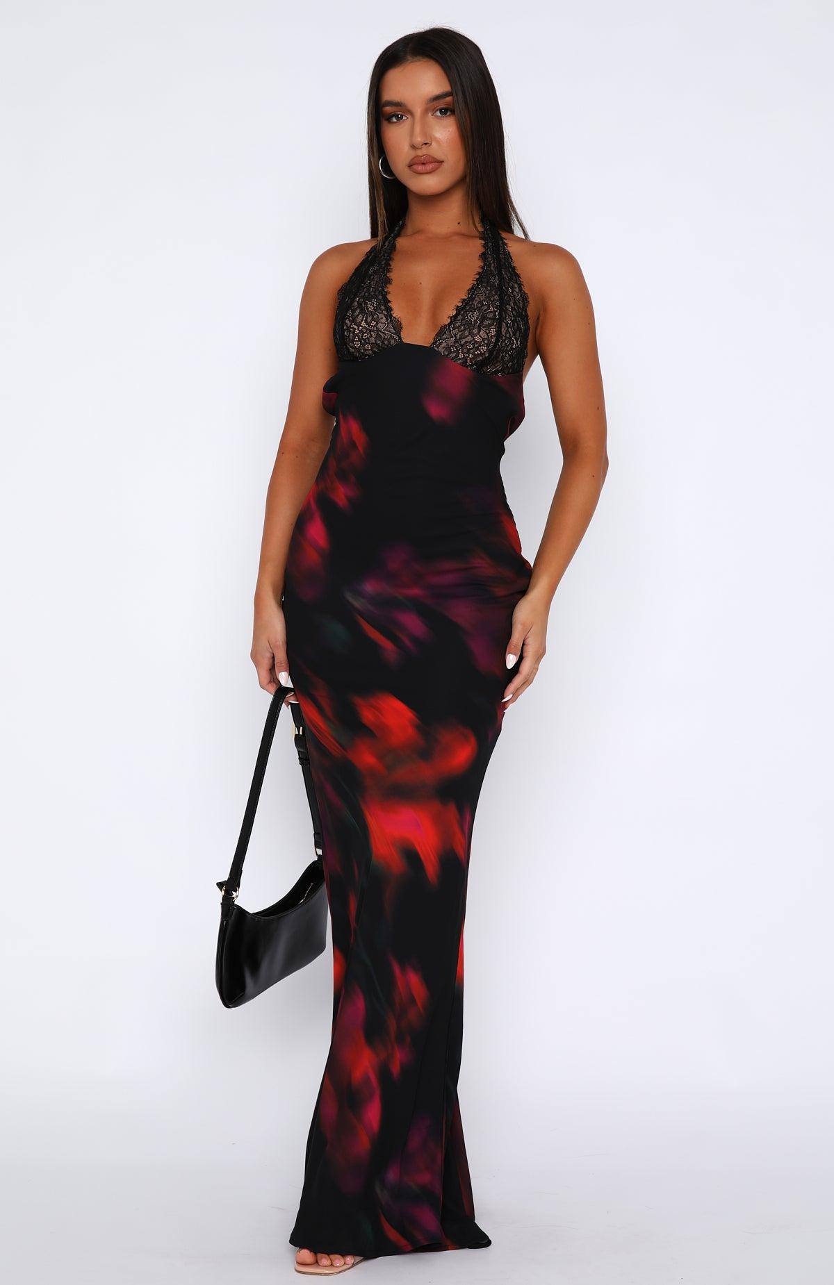 She's red carpet ready in the Beyond The Stars Maxi Dress Sangria Floral. Features a plunge neckline, halter neck style straps with button closure at back, lace fabric at bust with sheer lining, backless, back adjustable straps, maxi length and gorgeous printed fabric! Stand out at your next event and pair it with a mini bag and show off your look! - 100% Polyester- Ash is 166cm & is wearing an XS AS SEEN ON... @TARSHA.WHITMORE