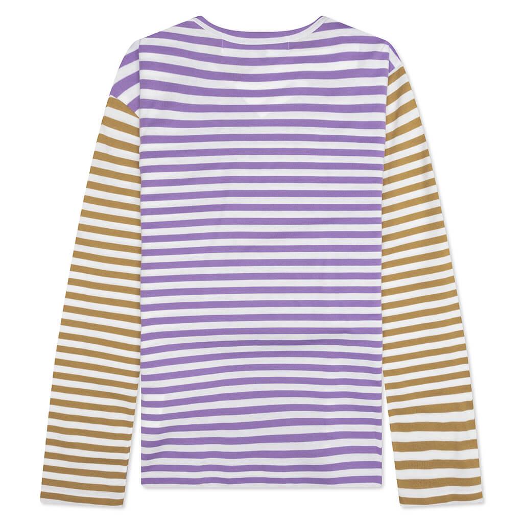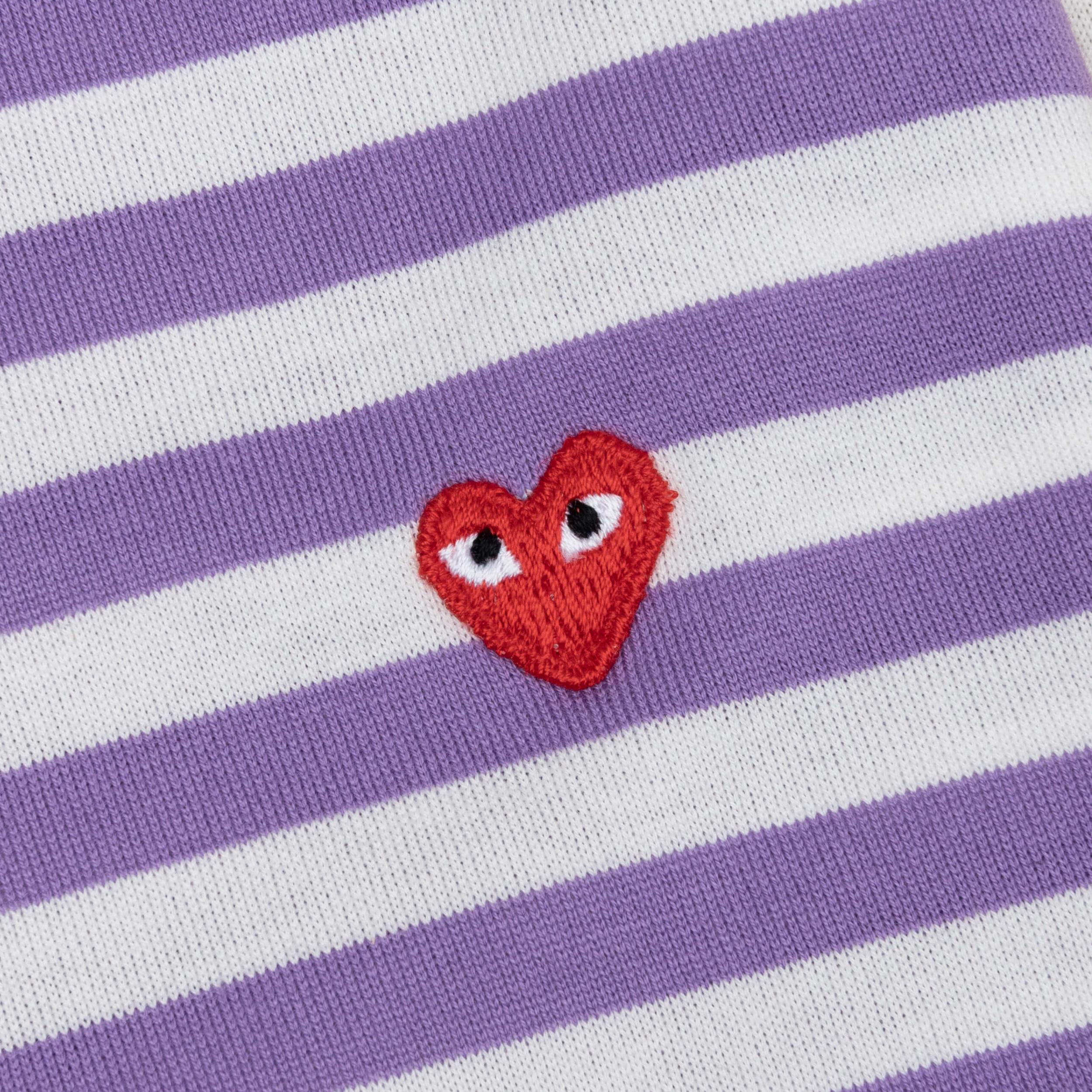 The Comme des Garçons PLAY repertoire introduces the Bi-Color Stripe T-Shirt. Featuring a cotton construction, the silhouette includes an all-over striped design. A ribbed neckline is also placed. An embroidered red heart is placed at the chest for a finished look. 100% cotton Ribbed neckline All-over stripes Embroidered heart Style No: AZ-T318-051-4 AZ T318 051 4