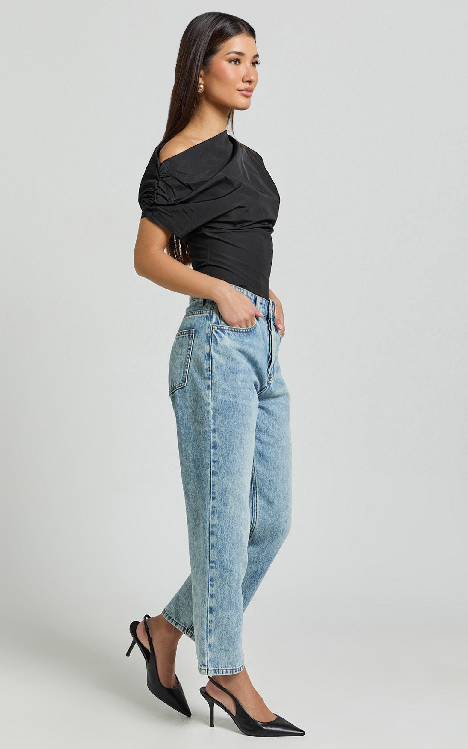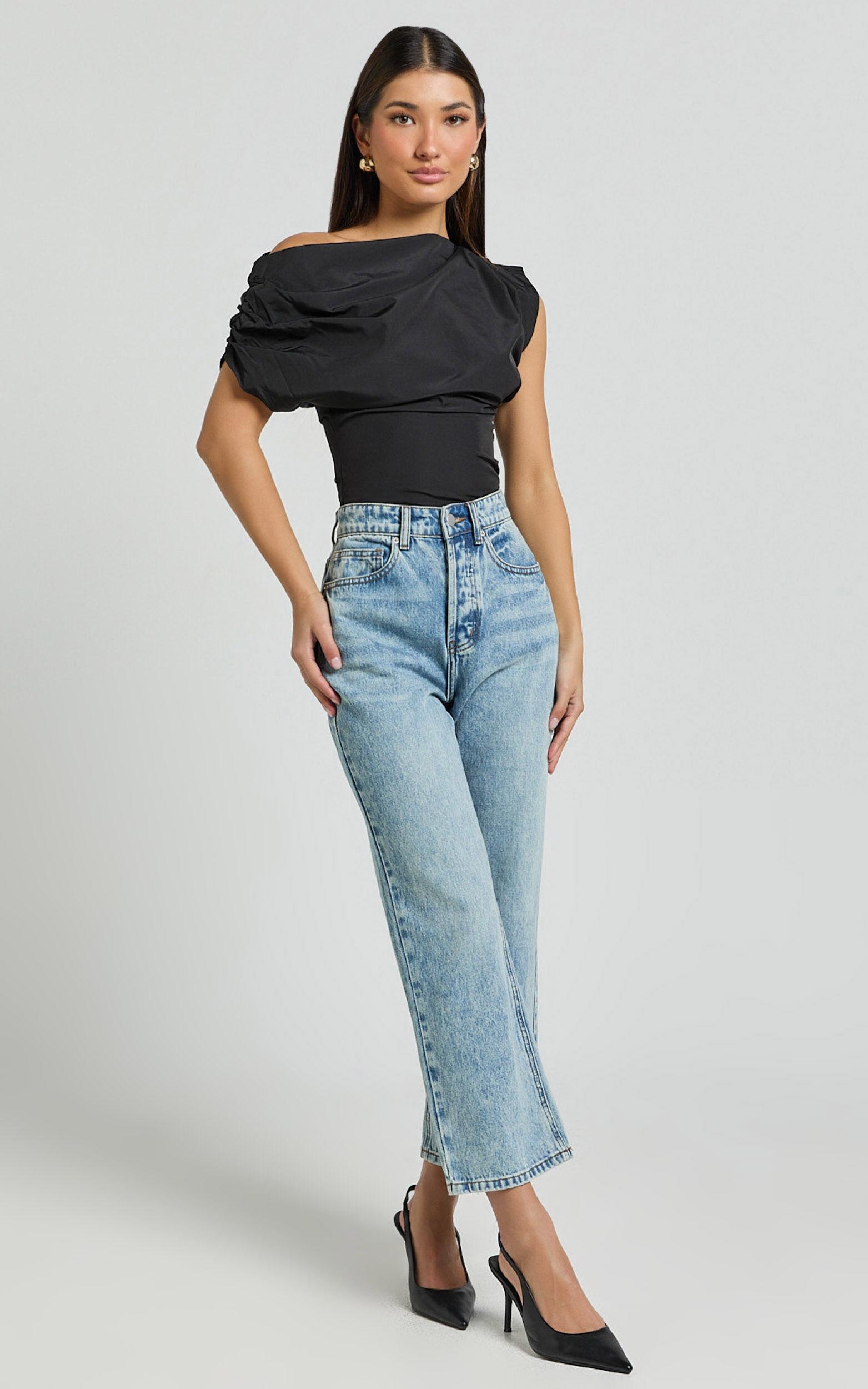 Transform your look with the Bianca Top - your new go-to Off Shoulder Draped Top in Black that's as unique as you are. Designed for the fearless and bold, this top is more than just a piece of clothing; it's a statement in empowerment and style.Product Details:Zip closureFashion topLight woven fabricAsymmetrical necklineParty perfectStandard lengthOne-shoulder sleevePolyester material.Size and FitSize S / 8 length: 55cm / 21.65inMaterial and CareMain Fabric: 100% PolyesterNo Stretch
