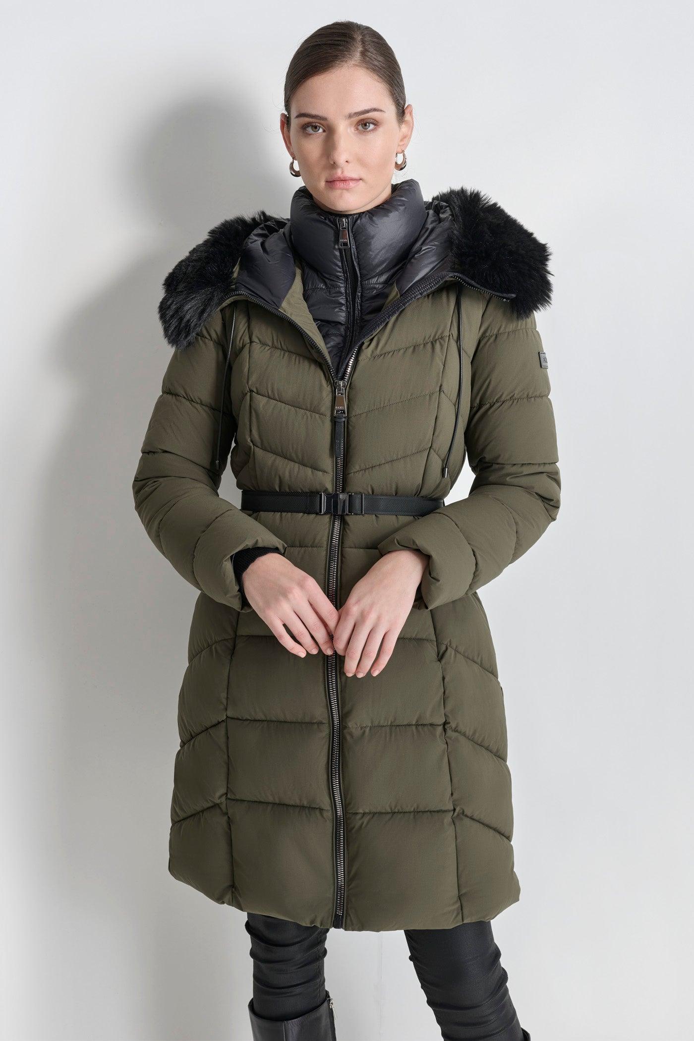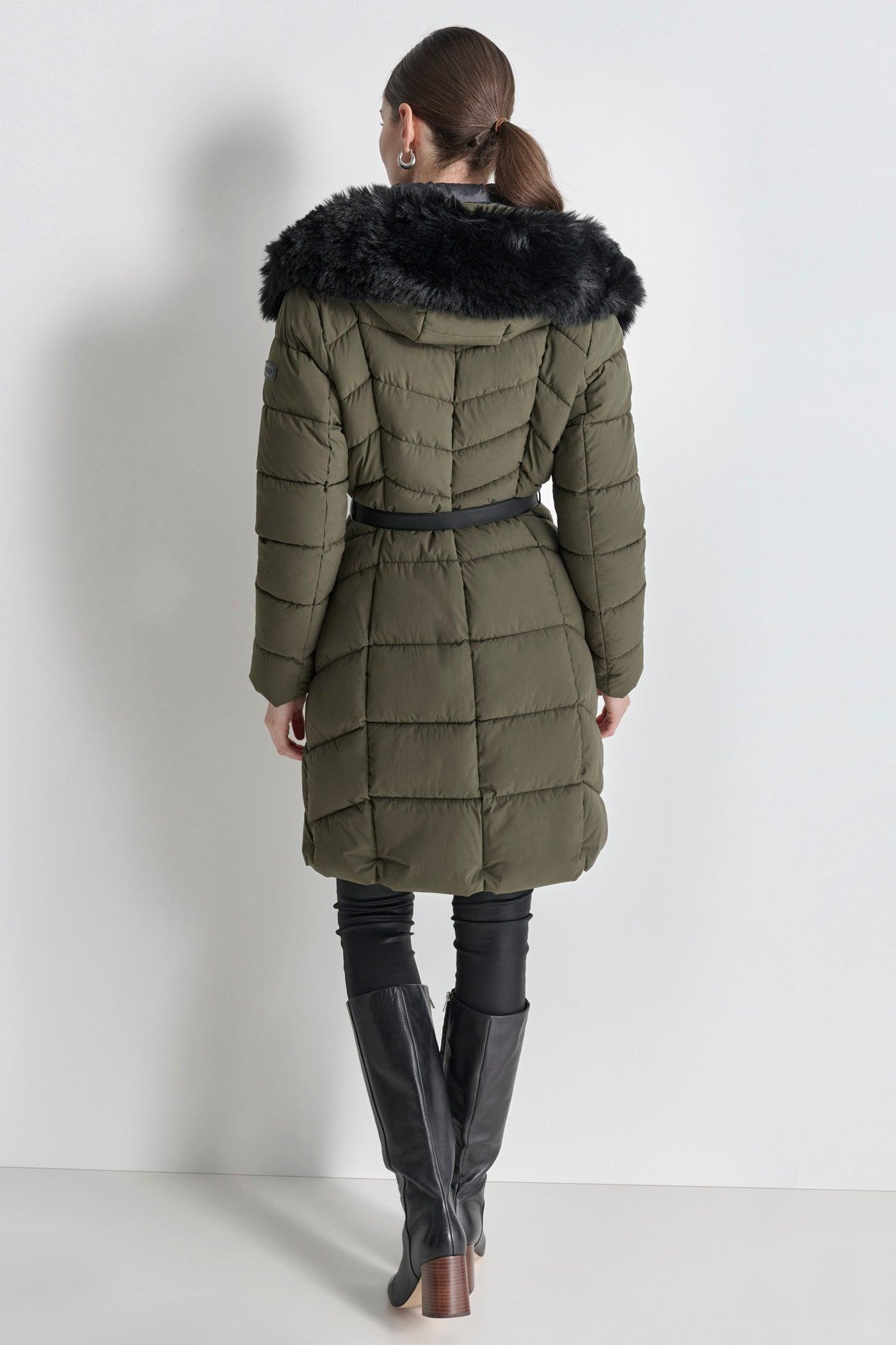 BIBBED FAUX-FUR HOODED PUFFER
