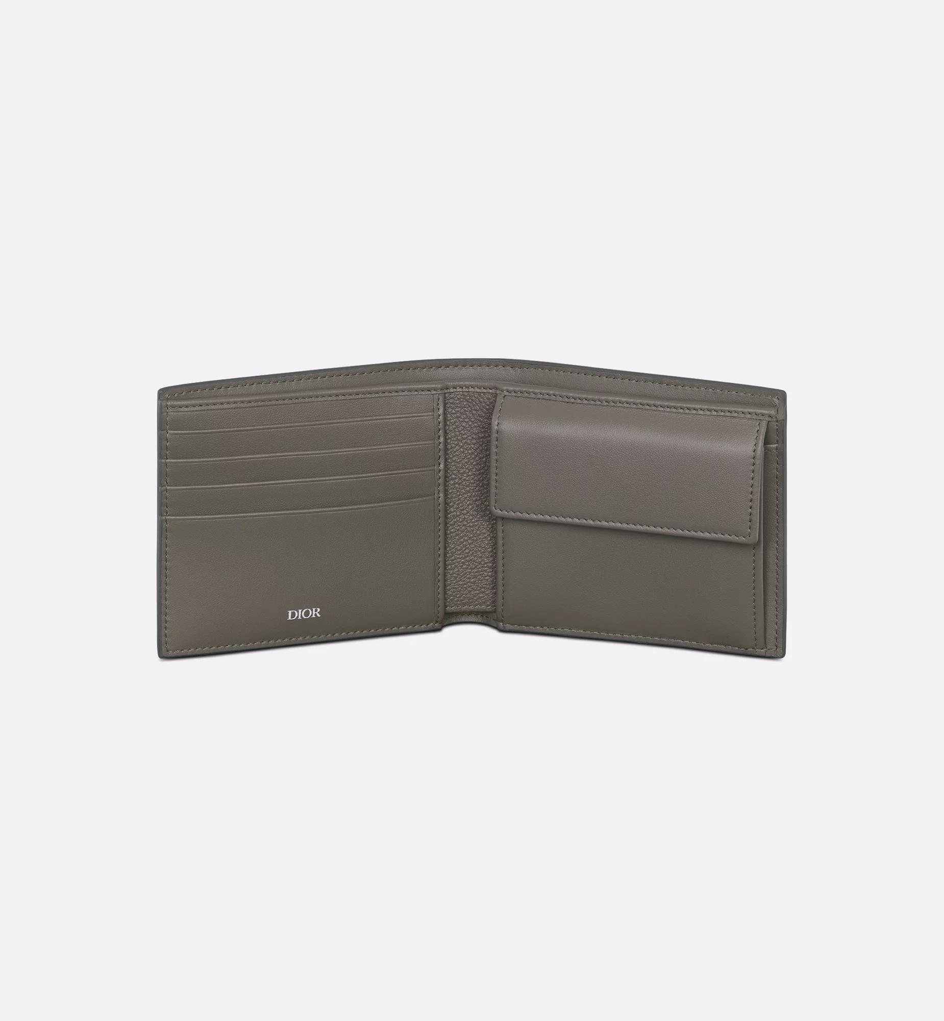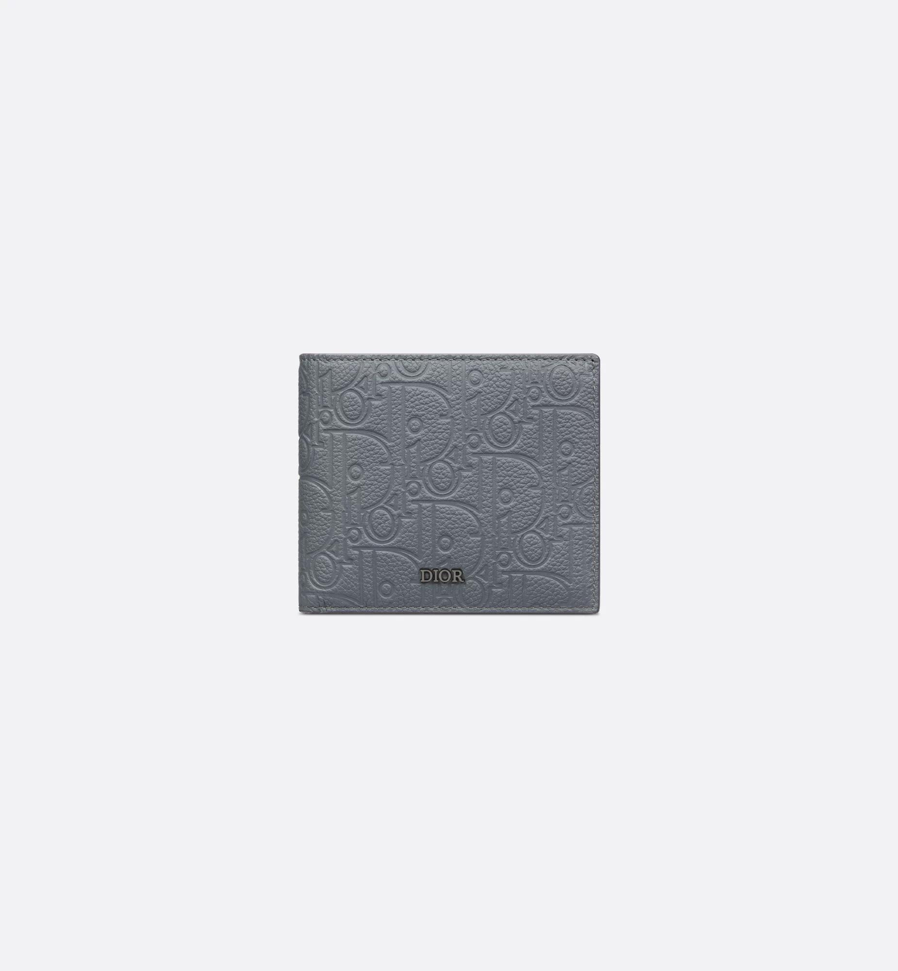 The bifold wallet is a refined, compact accessory. Displaying the virtuosity of the House ateliers, the Dior Gravity leather showcases the iconic motif delicately embossed on gray calfskin. The interior features a double bill compartment, two slip pockets for receipts, four card slots as well as a gusset compartment for coins secured by a snap closure. The bifold wallet will fit easily into any pocket or bag. Main composition: calfskin. Calfskin and technical fabric lining. Four card slots. Two slip pockets for receipts. Double bill compartment. Gusset compartment with snap for coins. Ruthenium-finish brass Dior signature on the front. Embossed Dior signature on the interior. Dust bag included. Made in Italy or Spain