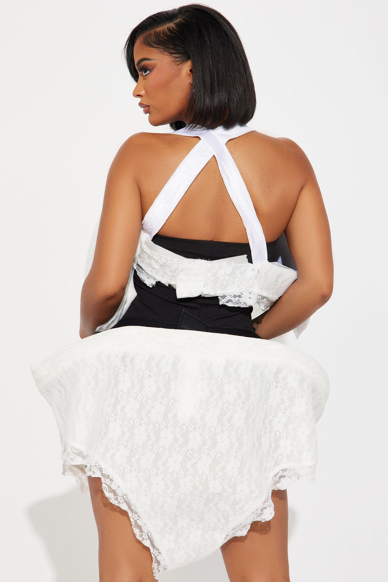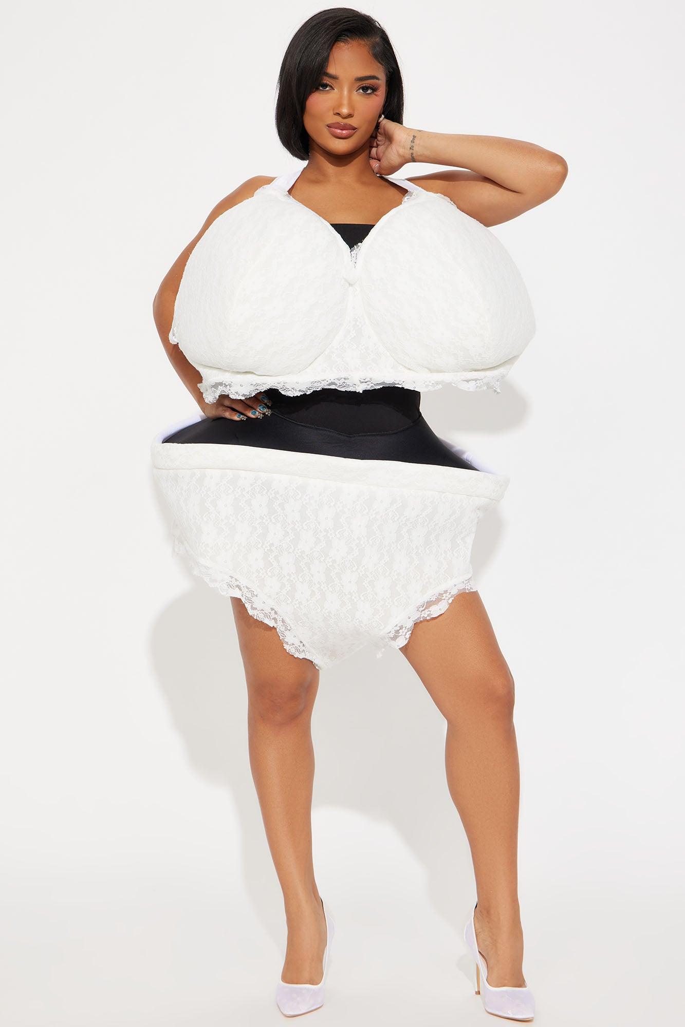 Available In White. 2 Piece Halloween Set Huge Under Garments Inspired Style With Black Sleeve, Leggings & Heels For The Perfect Look! Includes Lace Underwear & Bra Additional Info For Description: Pull On Costume - One Size Fits Most! Final Sale 100% Polyester Imported
