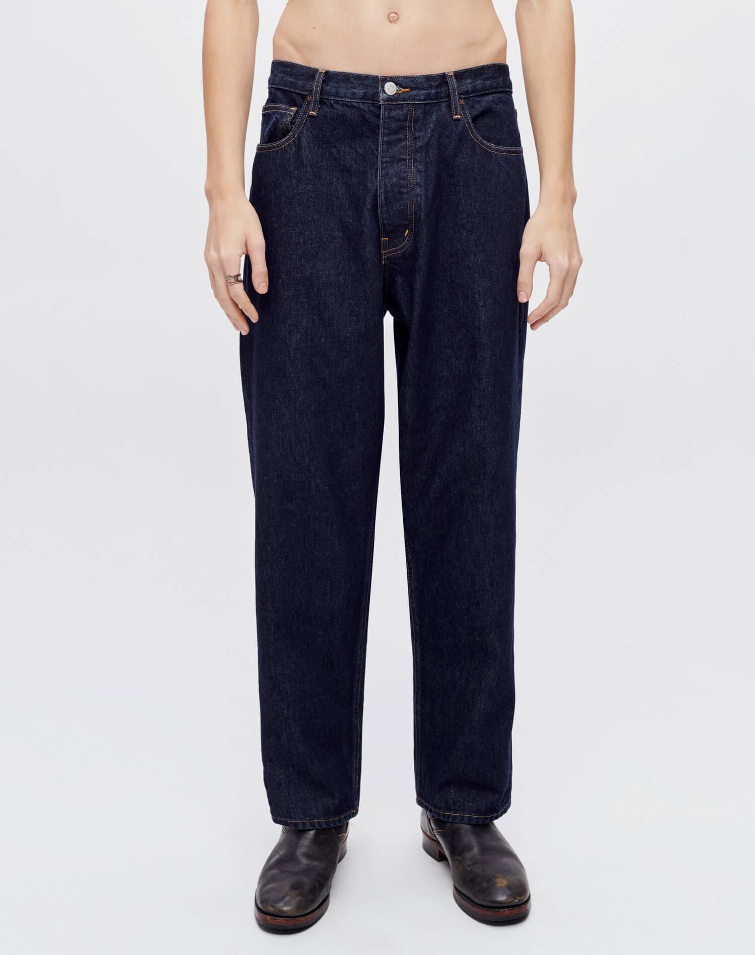 All Surplus Sale styles are final sale and cannot be returned. The Big N' Baggy in Rinse is our latest men's denim silhoutte, inspired by the oversized styles of the 90s. Available in Rinse, a deadstock like deep indigo.