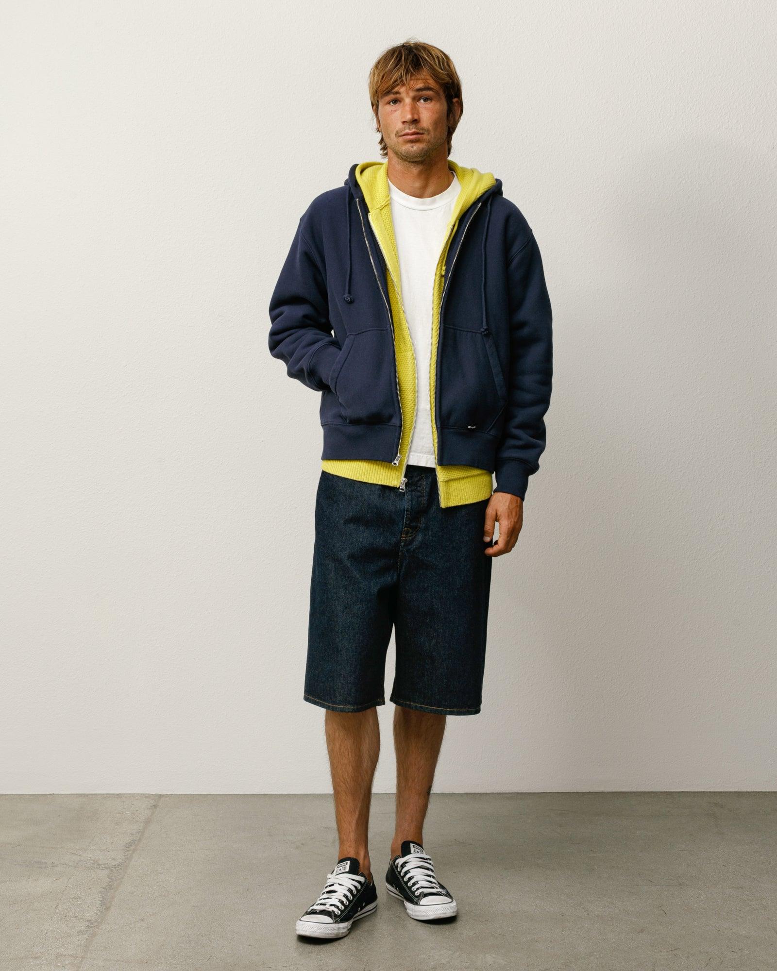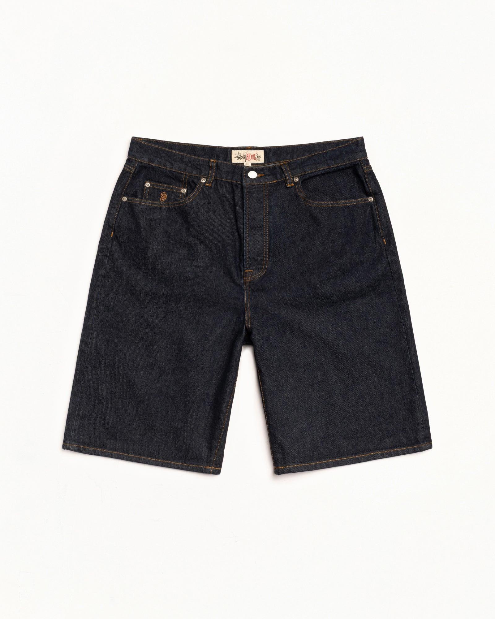 Baggy short in 14.5oz denim. Oversized waist with a relaxed rise and roomy cut. Features branded nickel shank hardware and a suede Stüssy logo patch. Size down for a more true-to-size fit in the waist. - Button fly - Five pocket styling - Swirly "S" embroidery on coin pocket - Oversized fit - Relaxed rise - Unisex - Size 32 inseam: 10 ½" / 26.8cm - Size 32 leg opening: 27" / 68.6cm - Material: 100% cotton - Imported