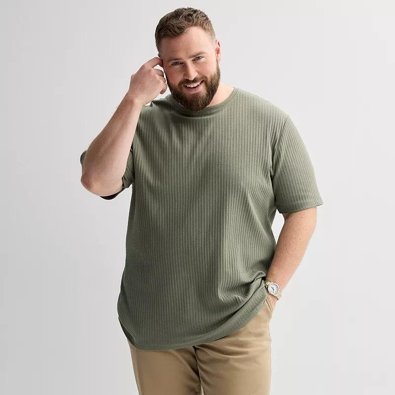Elevate your everyday style with this textured tee from Apt. 9®. Offering a modern fit with a comfortable neckline and effortlessly versatile sleeves, this shirt pairs perfectly with jeans or shorts for casual outings, making it a stylish staple for any wardrobe. Click on this MEN'S GUIDE to find the perfect fit and more!Elevate your everyday style with this textured tee from Apt. 9®. Offering a modern fit with a comfortable neckline and effortlessly versatile sleeves, this shirt pairs perfectly with jeans or shorts for casual outings, making it a stylish staple for any wardrobe. Click on this MEN'S GUIDE to find the perfect fit and more!FEATURES Crewneck na Jersey construction na Short sleeveFABRIC & CARE Cotton, polyester, spandex Machine wash Imported na Size: L Tall. Color: Galvanized Green. Gender: male. Age Group: adult.