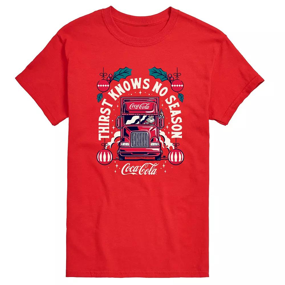 Update your holiday style with this Mens Coca-Cola Thirst Knows No Season Graphic Tee. Update your holiday style with this Mens Coca-Cola Thirst Knows No Season Graphic Tee. FEATURES Crewneck Short sleeveFABRIC & CARE Heather Colors: Cotton/Polyester, Solid Colors: Cotton Machine wash Imported Size: L. Color: Red. Gender: male. Age Group: adult.