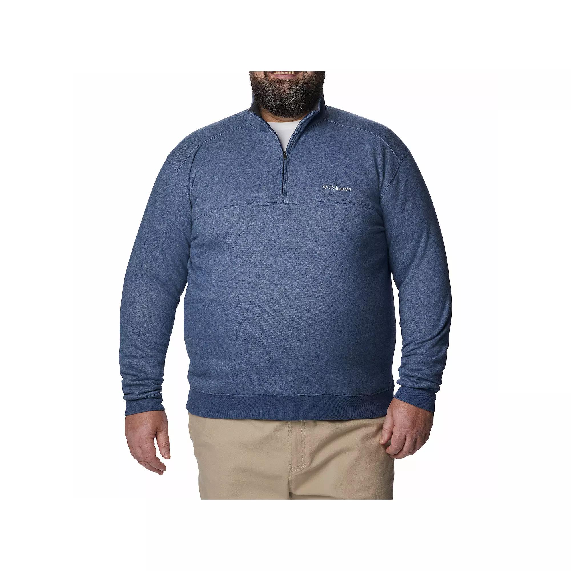 ; Become the mountain with the Big Tall Hart Mountain II 1/2 Zip. Stand collar neckline. Pullover design with half-zip closure. Brand logo on left chest. Long sleeves with banded cuffs. Straight, banded hemline. Shell: 60% cotton, 40% polyester. Rib: 95% cotton, 5% elastane. Machine wash cold, tumble dry low. Imported. Measurements: Length: 32 in Sleeve Length: 28 1 2 in Product measurements were taken using size 1X. Please note that measurements may vary by size.