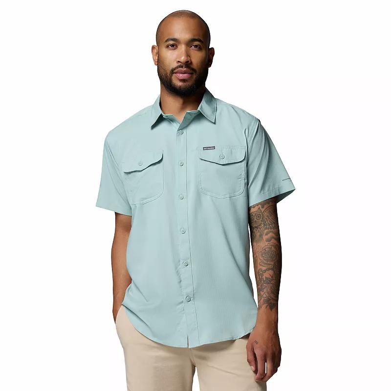 Explore your world in style and comfort with this mens button-down shirt from Columbia.Watch the product video here.Omni-Wick moisture-wicking fabric blend keeps you dry and comfortableOmni-Shade UPF-40 sun-blocking protectionAntimicrobial treatment protects product from bacterial growthQuick-dry technologyVented hemsPoint collarButton front2-pocketShort sleevesFIT & SIZINGRegular fitFABRIC & CAREPolyesterMachine washImportedThe antimicrobial properties do not protect users or others against bacteria, viruses, germs, or other disease organisms. Size: 1XB. Color: Charcoal. Gender: male. Age Group: adult. Pattern: Solid.