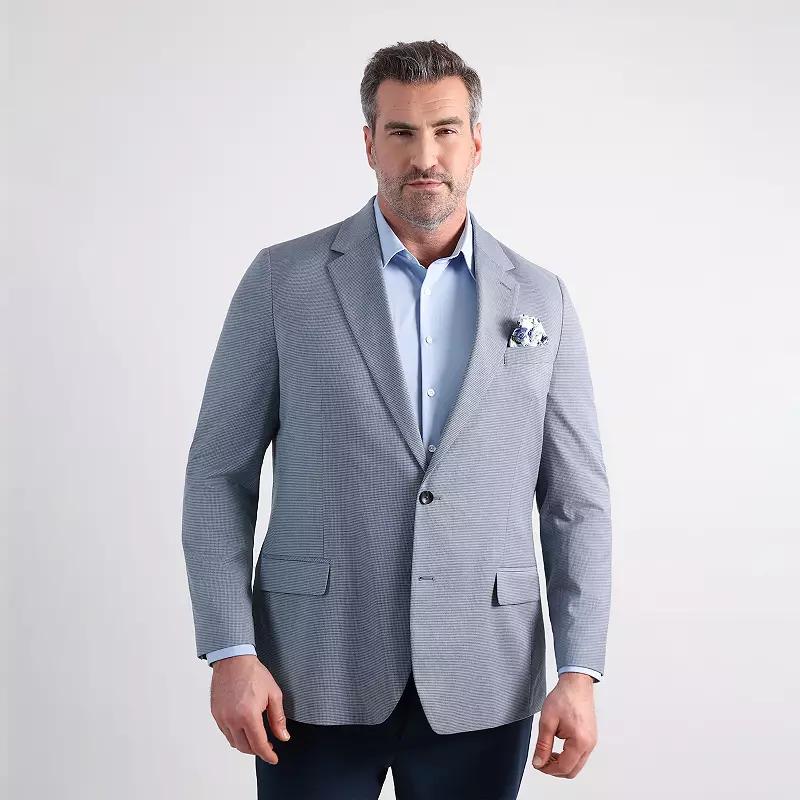 Step up your style with the Big & Tall J.M. Haggar™ Mélange Weave Tailored Fit Sport Coat, designed to deliver a modern and refined look. Click on this MEN'S GUIDE to find the perfect fit and more!Step up your style with the Big & Tall J.M. Haggar™ Mélange Weave Tailored Fit Sport Coat, designed to deliver a modern and refined look. Click on this MEN'S GUIDE to find the perfect fit and more!FEATURES Button front Long sleeve 2 front flap pockets, 2 front straight flap pocketsFABRIC & CARE Polyester, Viscose, Elastane Dry clean Imported na Size: 58 REG. Color: Slate Blue. Gender: male. Age Group: adult.