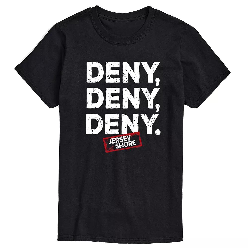 Update your casual wardrobe with this Mens Jersey Shore Deny Deny Deny Graphic Tee. Update your casual wardrobe with this Mens Jersey Shore Deny Deny Deny Graphic Tee. FEATURES Crewneck Short sleevesFABRIC & CARE Solid: cotton Heather: cotton, polyester Machine wash Imported Size: XL. Color: Black. Gender: male. Age Group: adult.