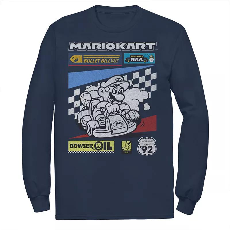 Update your casual wardrobe with this fun Big & Tall Mario Kart Mario Driving Poster Long Sleeve. Update your casual wardrobe with this fun Big & Tall Mario Kart Mario Driving Poster Long Sleeve. FEATURES Crewneck Long sleeveFABRIC & CARE Cotton, polyester Machine wash Imported Size: 4XL Tall. Color: Navy. Gender: male. Age Group: adult.