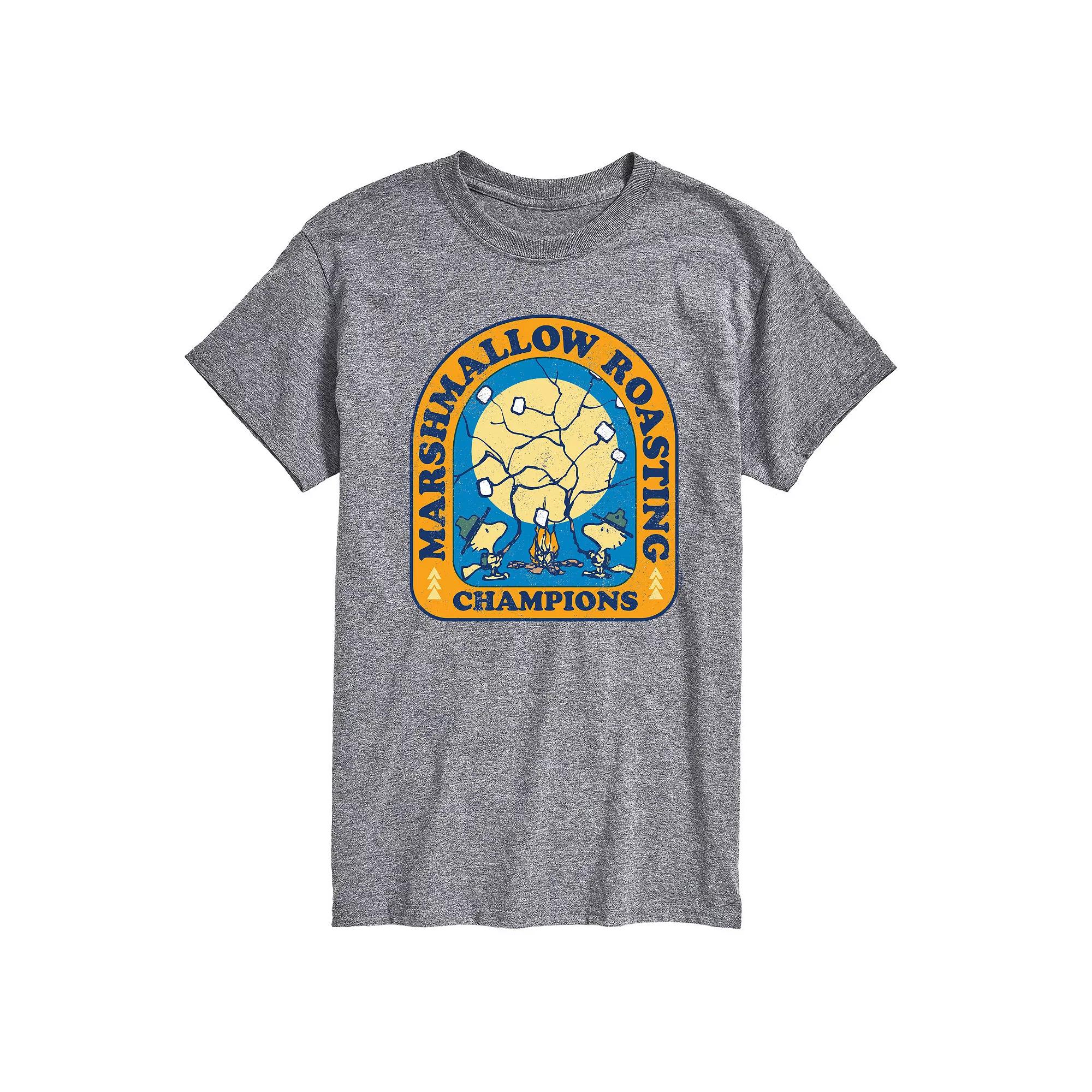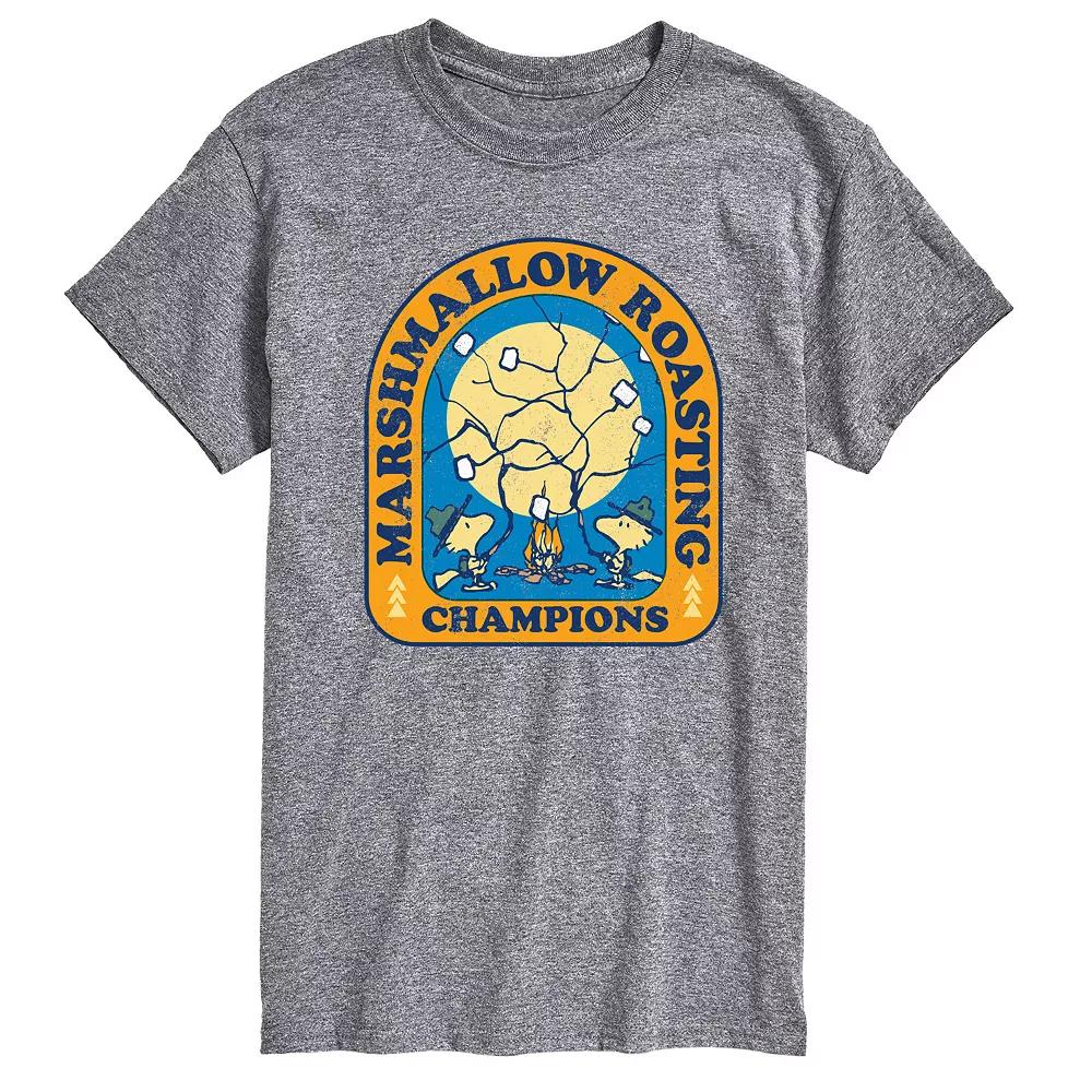 Update your casual wardrobe with this Mens Peanuts Marshmallow Roasting Graphic Tee. FEATURES Crewneck Short sleeveFABRIC & CARE Solid colors: cotton; Heather colors: cotton, polyester Machine wash Imported Color: White. Gender: male. Age Group: adult.