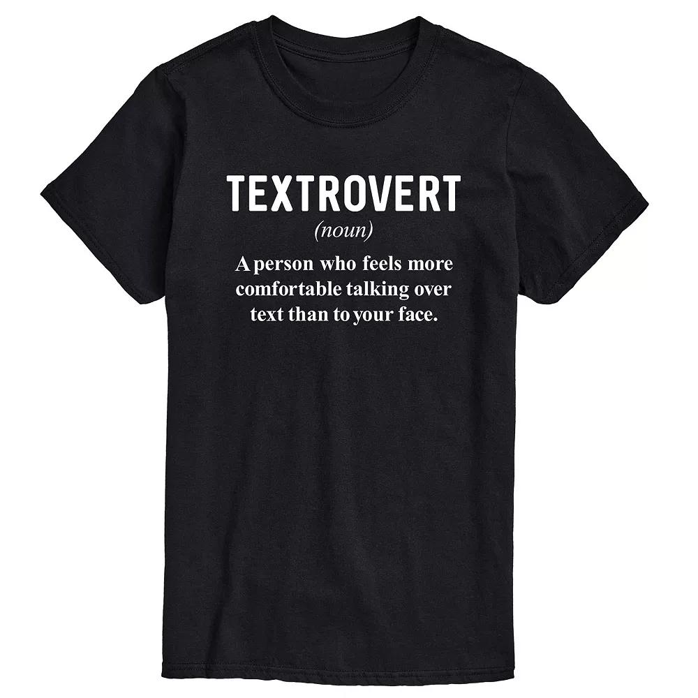Show off your humorous side with this mens Textrovert Tee. FEATURES Crewneck Short sleeveFIT & SIZING ClassicFABRIC & CARE Solid colors: cotton; Heather colors: cotton, polyester Machine wash Imported Size: 3XB. Color: Black. Gender: male. Age Group: adult. Pattern: graphic.