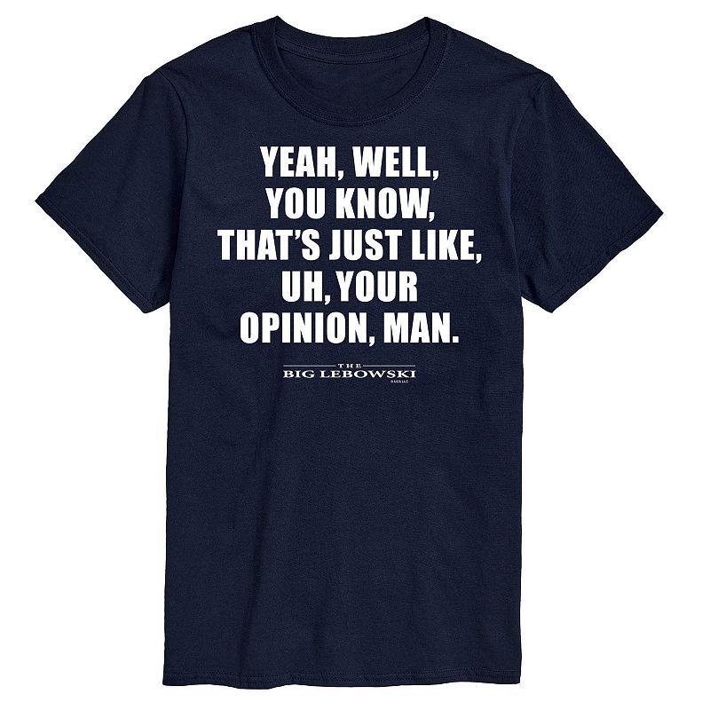 The Big Lebowski fans need to get their hands on this fun mens graphic tee. The Big Lebowski fans need to get their hands on this fun mens graphic tee. FEATURES Crewneck Short sleevesFABRIC & CARE Solid: Cotton, Heather: Cotton, polyester Machine wash Imported Size: XXL Tall. Color: Navy. Gender: male. Age Group: adult. Material: Polyester|Cotton.