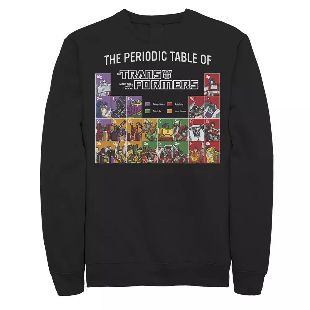 Update your casual wardrobe with this fun Big & Tall Transformers The Periodic Table Fleece Sweatshirt. Update your casual wardrobe with this fun Big & Tall Transformers The Periodic Table Fleece Sweatshirt. FEATURES Crewneck Long sleeveFABRIC & CARE Cotton, polyester Machine wash Imported Size: 4XL Tall. Color: Black. Gender: male. Age Group: adult.