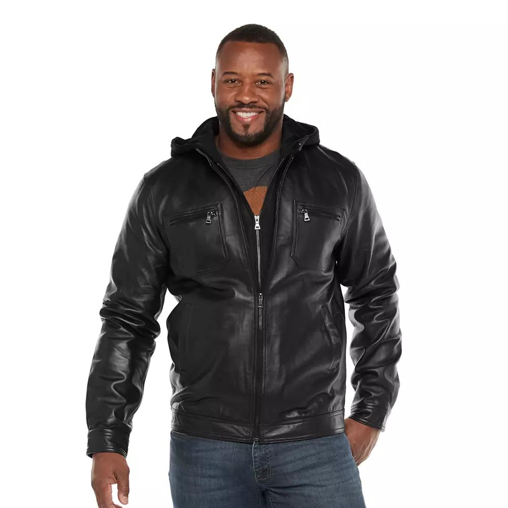 Rugged style. Stand out in a crowd with the handsome look of this mens leather racer jacket from Vintage Leather. Midweight insulation for comfort in colder conditions Detachable liner & hood Snap collar Zip front 5-pocket Long sleeves FIT & SIZING Classic fit features relaxed arm holes, regular body and traditional sleeve openings Adjustable snap cuffs FABRIC & CARE Shell: leather Lining: nylon Liner: polyester Professional leather clean Imported Size: XXL Tall. Color: Black. Gender: male. Age Group: adult.