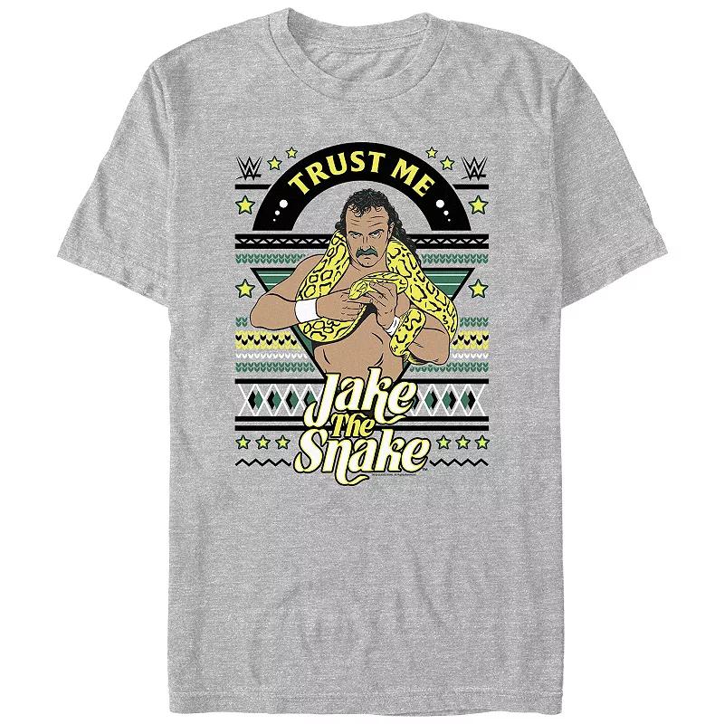 Wrestling fans will put the smack down in style with this Big & Tall WWE Jake The Snake Christmas Sweater Graphic Tee Wrestling fans will put the smack down in style with this Big & Tall WWE Jake The Snake Christmas Sweater Graphic Tee FEATURES Crewneck Short sleevesFABRIC & CARE Cotton, polyester Machine wash Imported Size: M Tall. Color: Athletic Heather. Gender: male. Age Group: adult. Material: Polyester|Cotton.