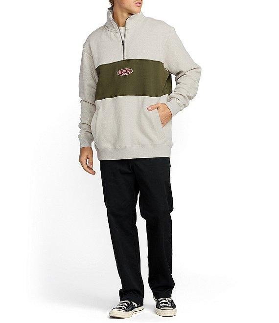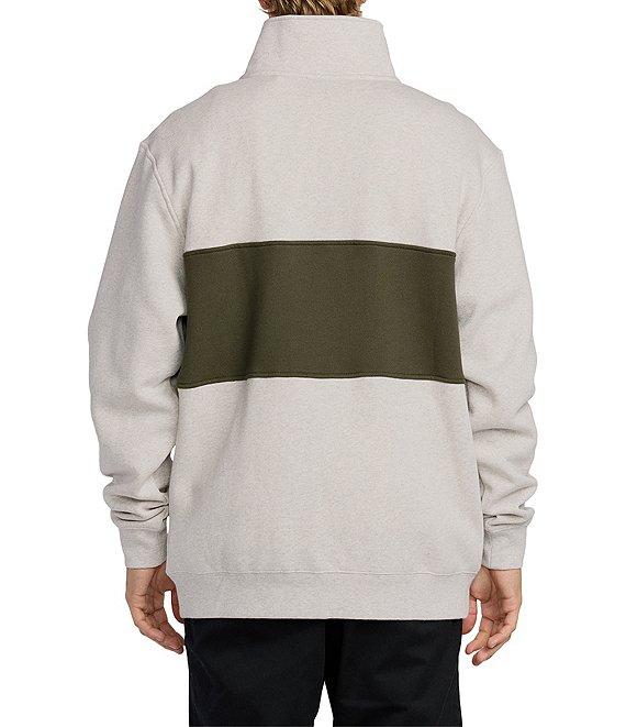From Billabong, this sweatshirt features: Color block design Quarter-zip mock neckline Long sleeves Wider shoulders Partial zip front Embroidered "Billabong" logo on the front 2 front pockets More traditional throwback fit Cotton/polyester heavyweight fleece Machine wash/tumble dry Imported.