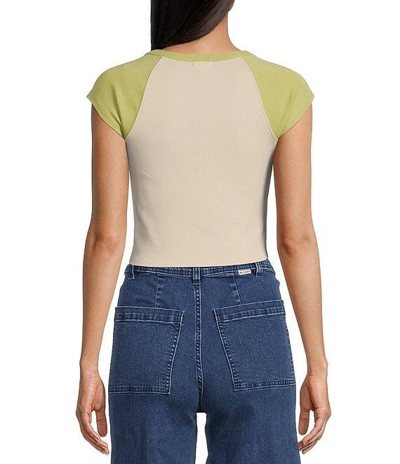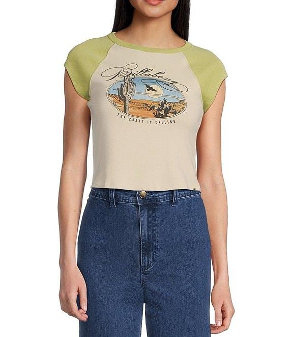 From Billabong, this t-shirt features:Color block designRound necklineRaglan short sleeves"Billabong" logo and graphic on the frontBranded metal platePullover stylingCropped silhouetteCotton/elastane 1x1-rib knitMachine wash/tumble dryImported.
