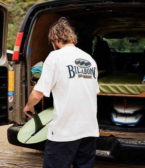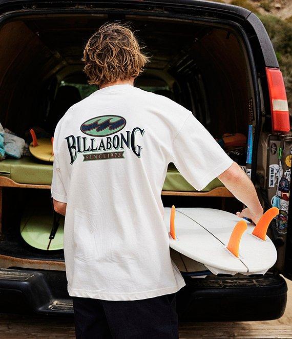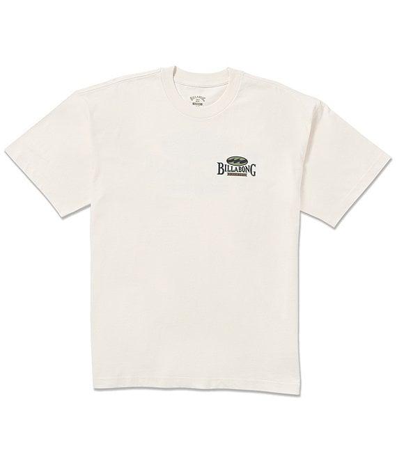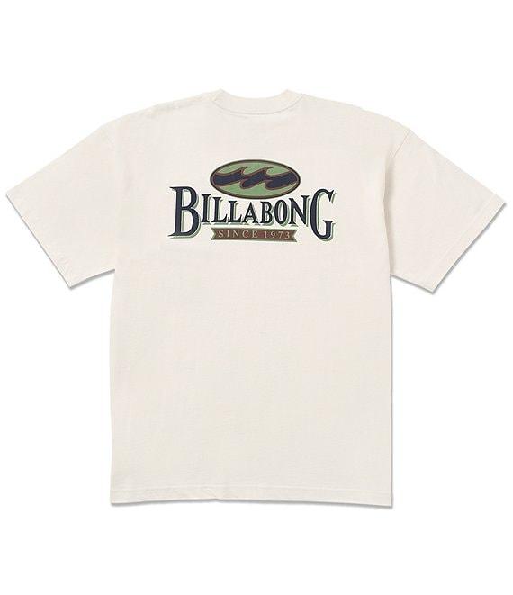 From Billabong, this t-shirt features: Crew neckline Short sleeves Traditional throw-back oversized font "Billabong" logo and icon logo detail front-and-back soft-hand screen print Side seam flag label Interior heat-transfer neck label Pullover construction Softened with a garment wash Ring spun heavyweight cotton jersey Machine wash/tumble dry Imported.