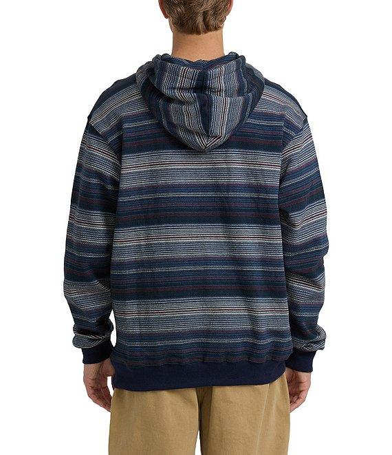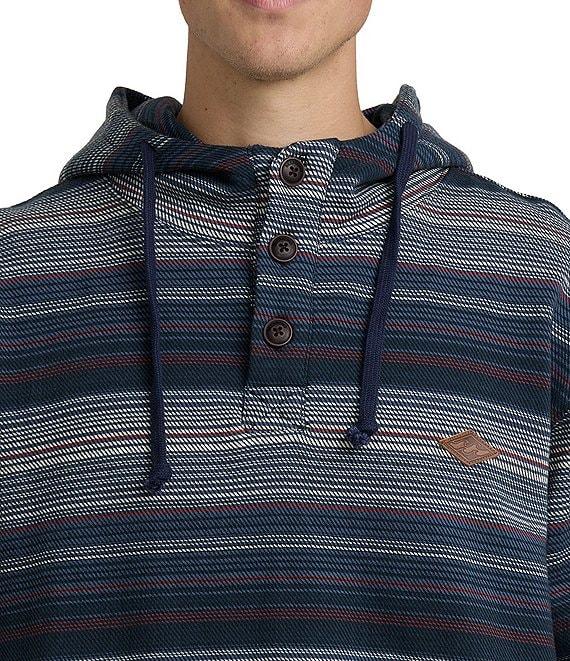 From Billabong, this hooded pullover features: Horizontal striped design Attached hood with draw cord Long sleeves 3-button placket Icon logo detail on the chest Front kangaroo pocket Solid cuffs and hem Pullover construction Cotton Machine wash/tumble dry Imported.