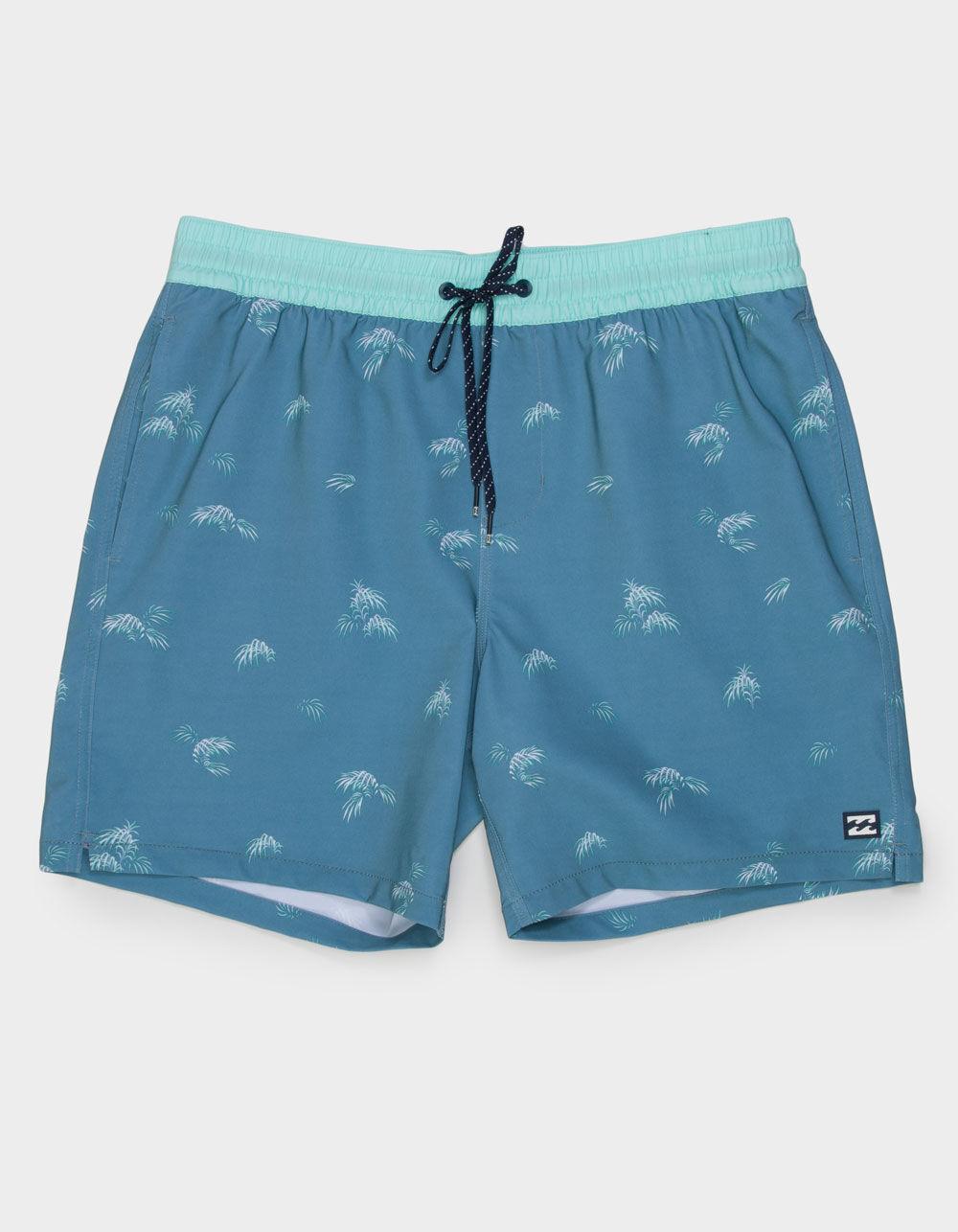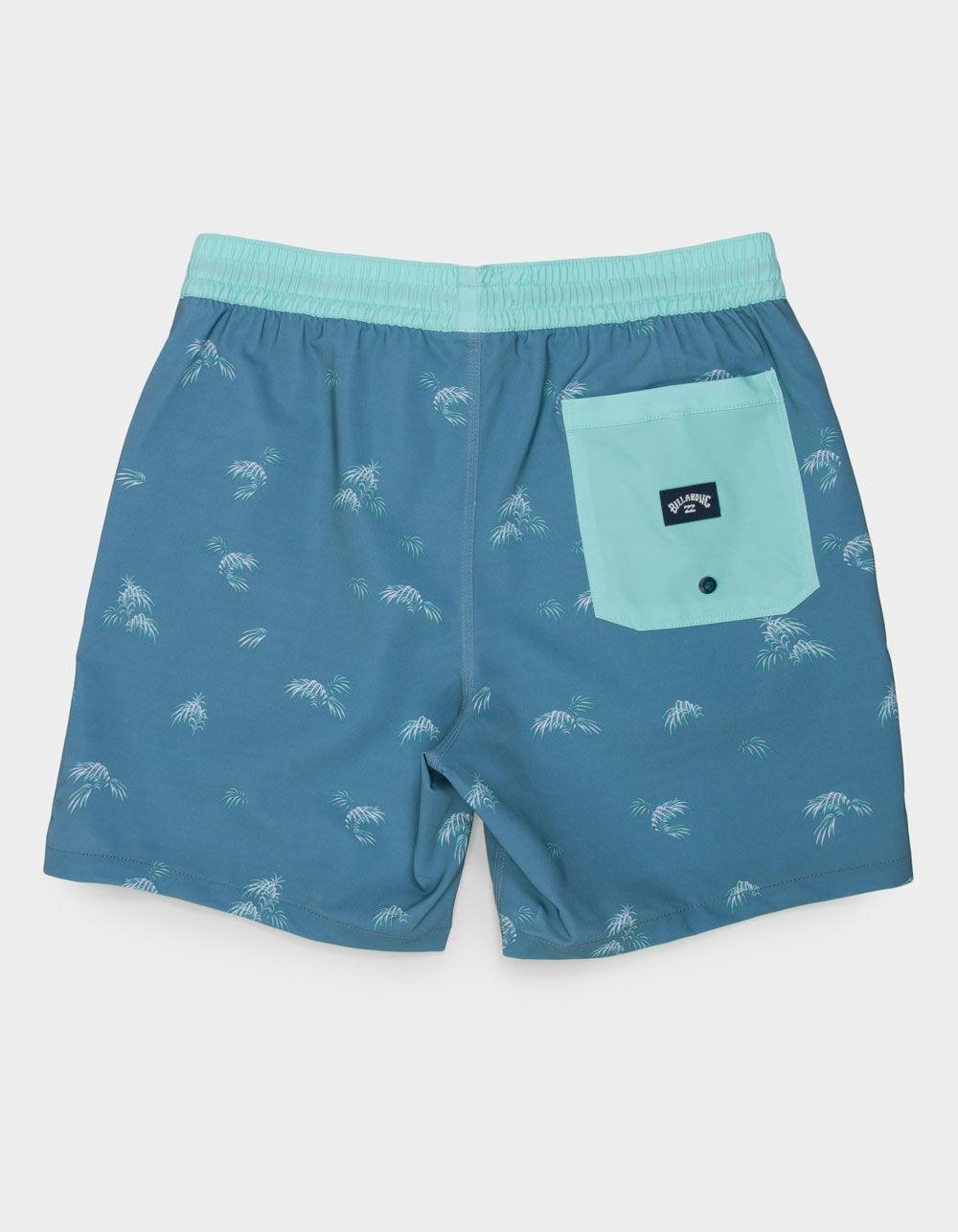 Billabong Sundays Layback Volley Shorts. Allover print. Side seam pockets. Elastic waistband with adjustable drawstring. Woven label at lower left leg. Back right pocket with hook-and-loop closure. Woven label on back pocket. Approximate outseam: 17". Approximate inseam: 6.5". 90% Recycled Polyester 10% Elastane. Machine wash. Imported.