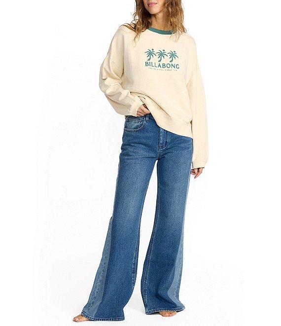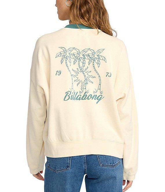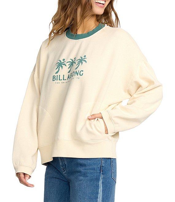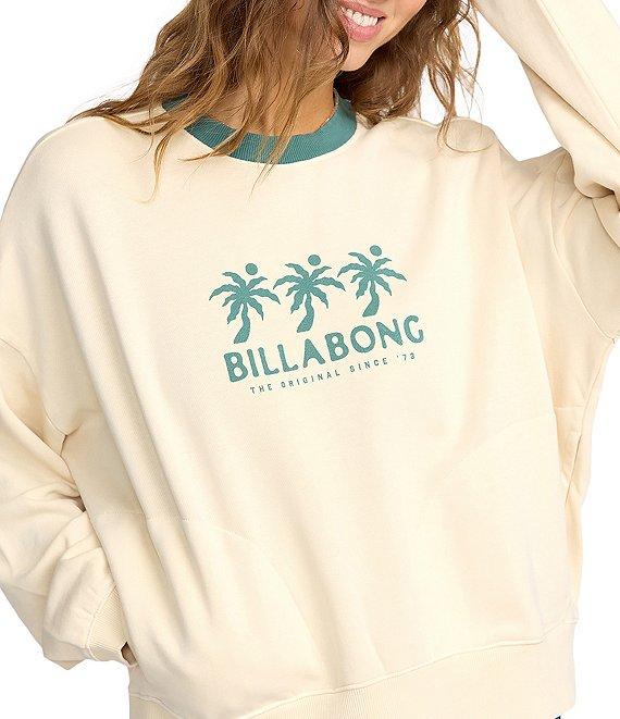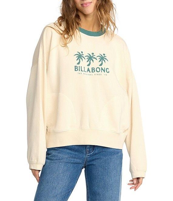 From Billabong, this sweatshirt features: Contrast neckline Long sleeves 3 palm trees and "Billabong" logo on the front and back Pullover styling Pigment, garment-dyed cotton/polyester brushed fleece Machine wash/tumble dry Imported.