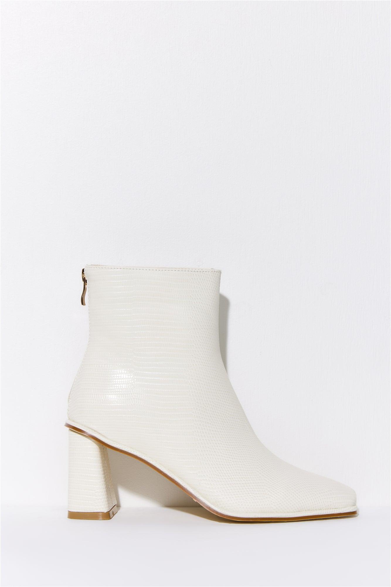 Ankle Boots. Scale faux leather upper. Square toe. Zip to back; gold-toned pull tab. 8cm block heel. Size 6 is EU 37. Style can be yours every day with the BILLINI Quinnie Boots. Featuring a scale faux leather and a gold zip to the back. Style with all your 'fits, from work to bar.