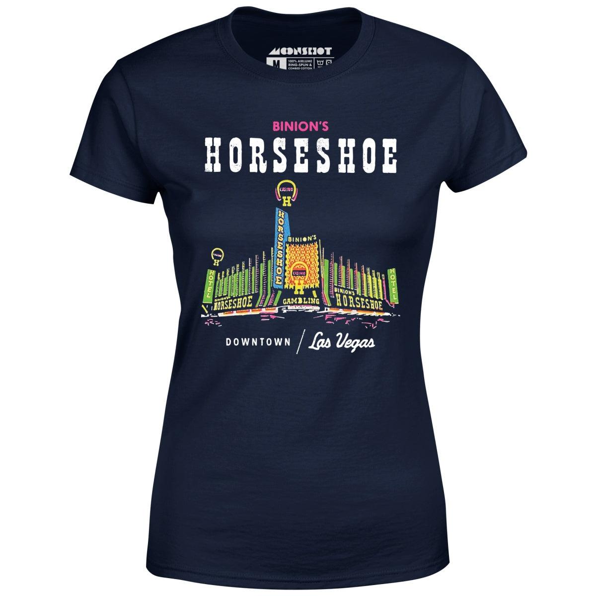 Binion's Horseshoe, established in 1951, was a renowned hotel and casino located at 128 Fremont Street in downtown Las Vegas. Known for its high betting limits and customer-focused amenities, it became a favorite among gamblers. The casino was also the birthplace of the World Series of Poker in 1970. In 2004, due to financial difficulties, Binion's Horseshoe ceased operations under its original name. This design is part of our vintage retro collection, celebrating the vintage defunct golden era Las Vegas venues of yesteryear. Printed on our super soft 100% ringspun & combed cotton women's T-Shirt. Or upgrade to our Luxury 52/48 cotton/poly vintage heather edition for an even softer classic look. We print & ship all of our high quality graphic tees in the USA.