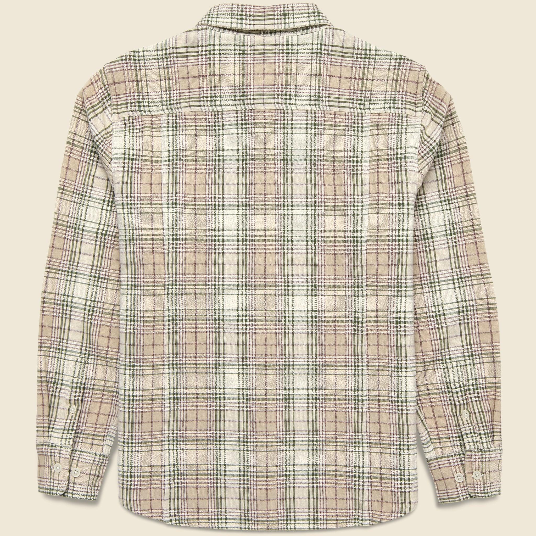 The Birch Shirt from Corridor is made with 100% midweight cotton that’s woven with a bespoke plaid pattern that has a dry, textured handfeel that’s perfect for cooler days. It’s cut with a relaxed fit through the chest and shoulder, and comes detailed with a single chest pocket, a mother-of-pearl button placket, and a spread collar to top it off. Midweight cotton flannel Dry, textured handfeel Single chest pocket Mother-of-pearl button placket Slightly curved hem Spread collar Relaxed fit that runs true to size We recommend taking your normal size Materials: 100% cotton The following measurements are for size Medium: Chest: 44” | Shoulder: 18” | Sleeve: 33” | Length: 28”