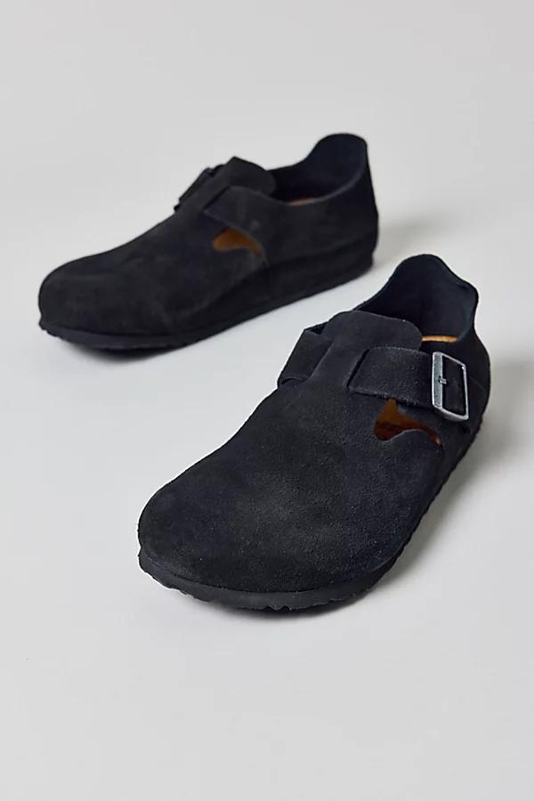 The London slip on by Birkenstock. Suede shoes with buckle closures. Molded cork footbed with a treaded outsole. Features Birkenstock London suede slip on Classic Birkenstock silhouette Cork footbed Treaded outsole Content + Care Suede, rubber Spot clean Imported Birkenstock Mens London Suede Slip-On Shoe in Faded Purple, Mens at Urban Outfitters
