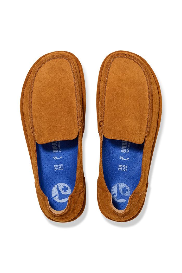 The Utti is a timeless moccasin-style shoe. The striking stitching catches the eye. The soft heel tab not only guarantees comfort but also ensures that the shoe is easy to put on and take off. The comfortable and light Deep Blue Footbed makes the shoe a perfect 24/7 all-rounder. Here, this classic model comes in an especially cozy version with shearling. Its natural design is down to the upper made from especially soft suede, which hugs the foot like a second skin.