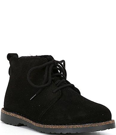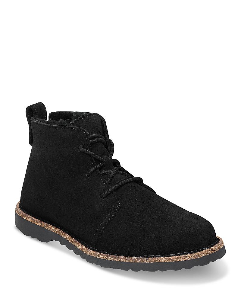 From Birkenstock, the Womens Uppsala Mid Suede Chukka Booties feature:Suede upperRoomy toe box allows toes plenty of freedomLace up closureGenuine shearling (Australia) liningContoured cork footbed supports the arches of the foot and cradles the heel for all day comfortFlexible rubber outsole with extra padding for comfortApprox. 3.75 shaft heightApprox. 11 shaft circumferenceApprox. 0.25 heel heightImported.