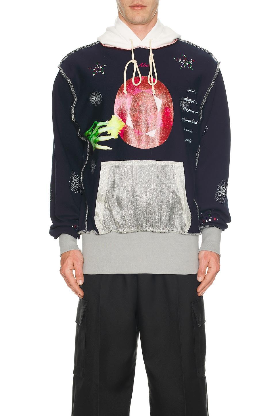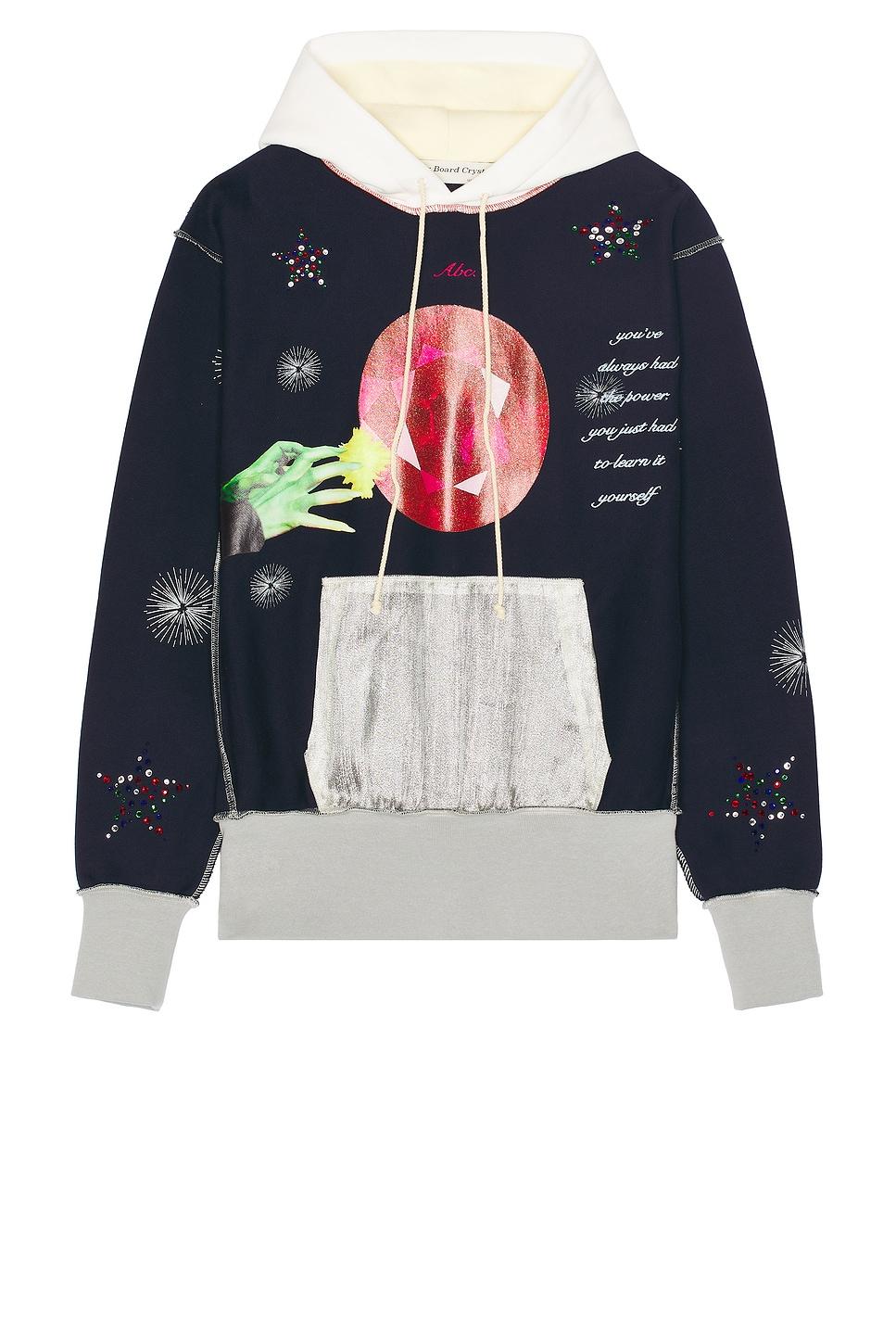 sweatshirt73% cotton, 27% polyester / Made in China / Dry clean only / Front and back graphic / Kangaroo pocket and drawstring hoodie / Inverse seam detail / Fleece lining / Our Style No. ADVF-MK15 / Manufacturer Style No. ABC-FW24-H021-EY07 / Model is wearing size M.