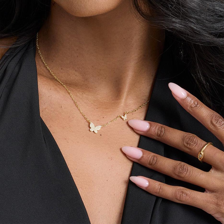 Add a touch of whimsy to your look with the Bisou de Papillon Necklace, featuring two delicate butterflies dancing together. This charming piece brings playful elegance to any outfit, perfect for those who love a little flutter of joy in their jewelry collection. Lightweight and graceful, it’s a sweet reminder to embrace beauty and freedom every day.