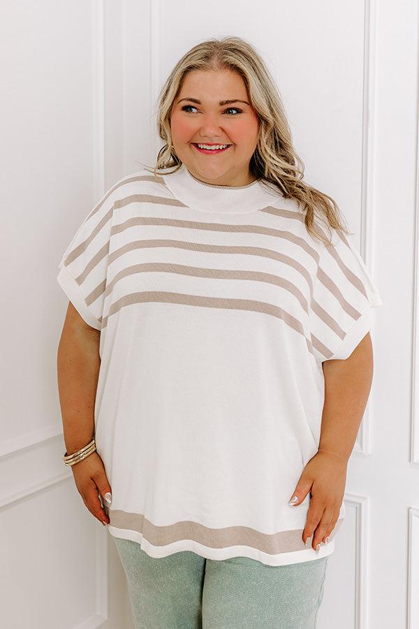 - Meet up for a casual hangout in this fabulous knit top! The relaxed design and chic striped pattern make this cutie a go-to for brunch, happy hour, or any fun outing. - Unlined knit material - A taupe colored striped pattern - A crew cut neckline - Short sleeves - A relaxed silhouette that ends in a straight hemline