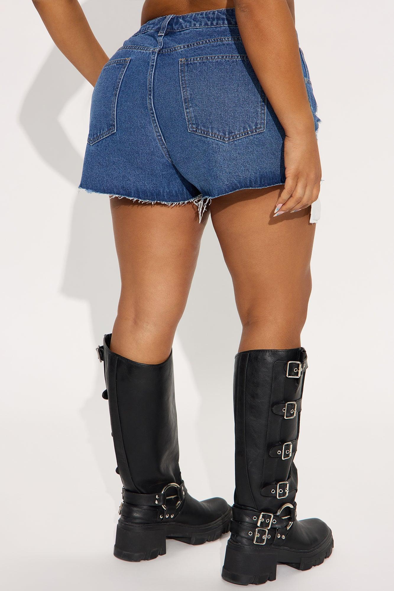 Bite The Dust Ripped Cut Off Denim Shorts - Medium Wash