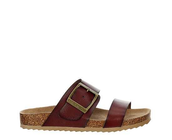 Bjorndal Courtney Women s Footbed Sandal Enjoy everyday comfort in the Courtney women s footbed Sandal from Bjorndal. With a faux leather upper featuring an adjustable buckle strap for a custom fit, this Slip-On Sandal pairs well with jeans or a casual dress. The Cushioned footbed & cork midsole cradle your foot, while the durable outsole provides excellent traction wherever you go. Synthetic upper Slip-On Lightly Cushioned footbed Cork midsole Traction outsole