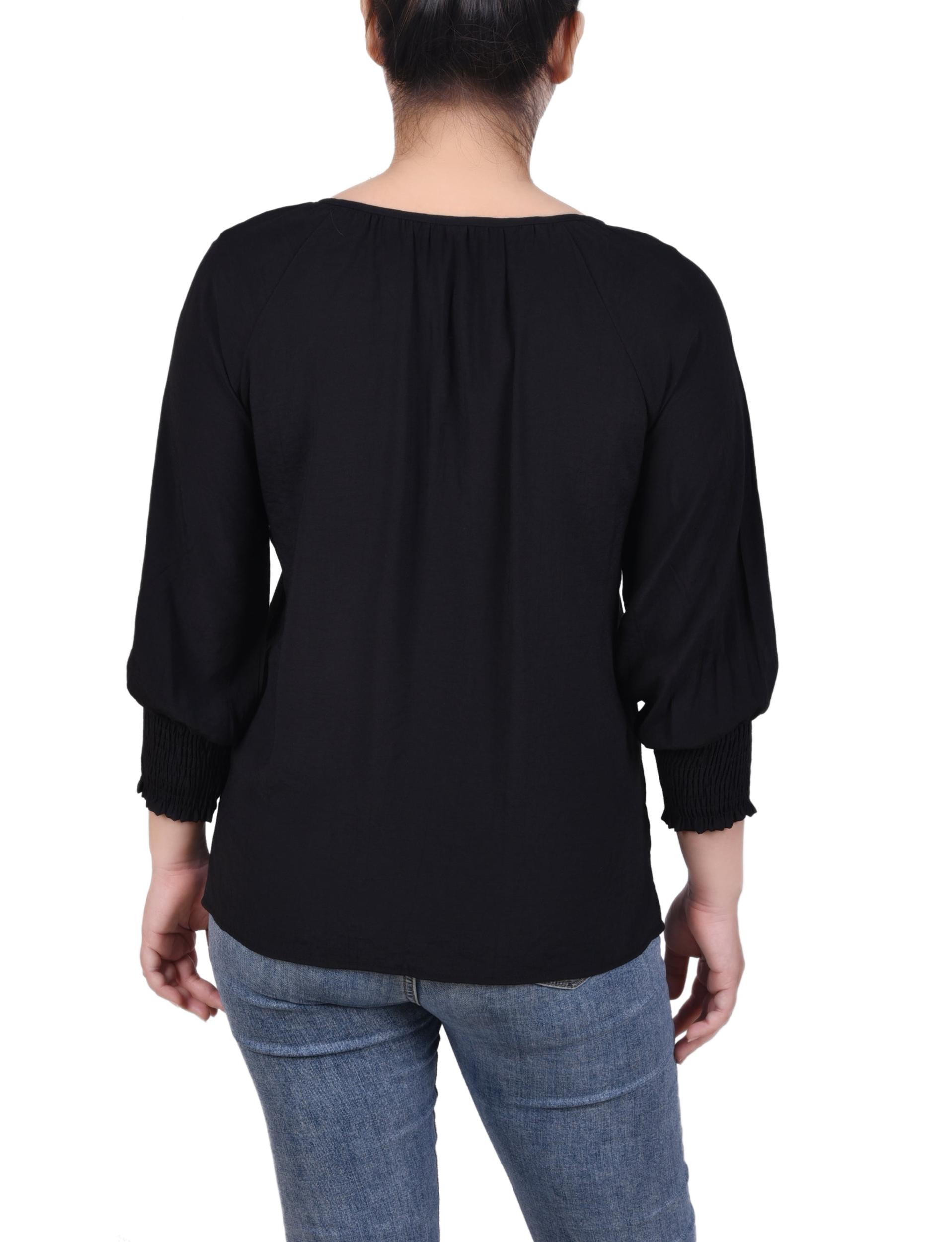 3/4 Length Sleeve Crochet Detail Blouse - Petite