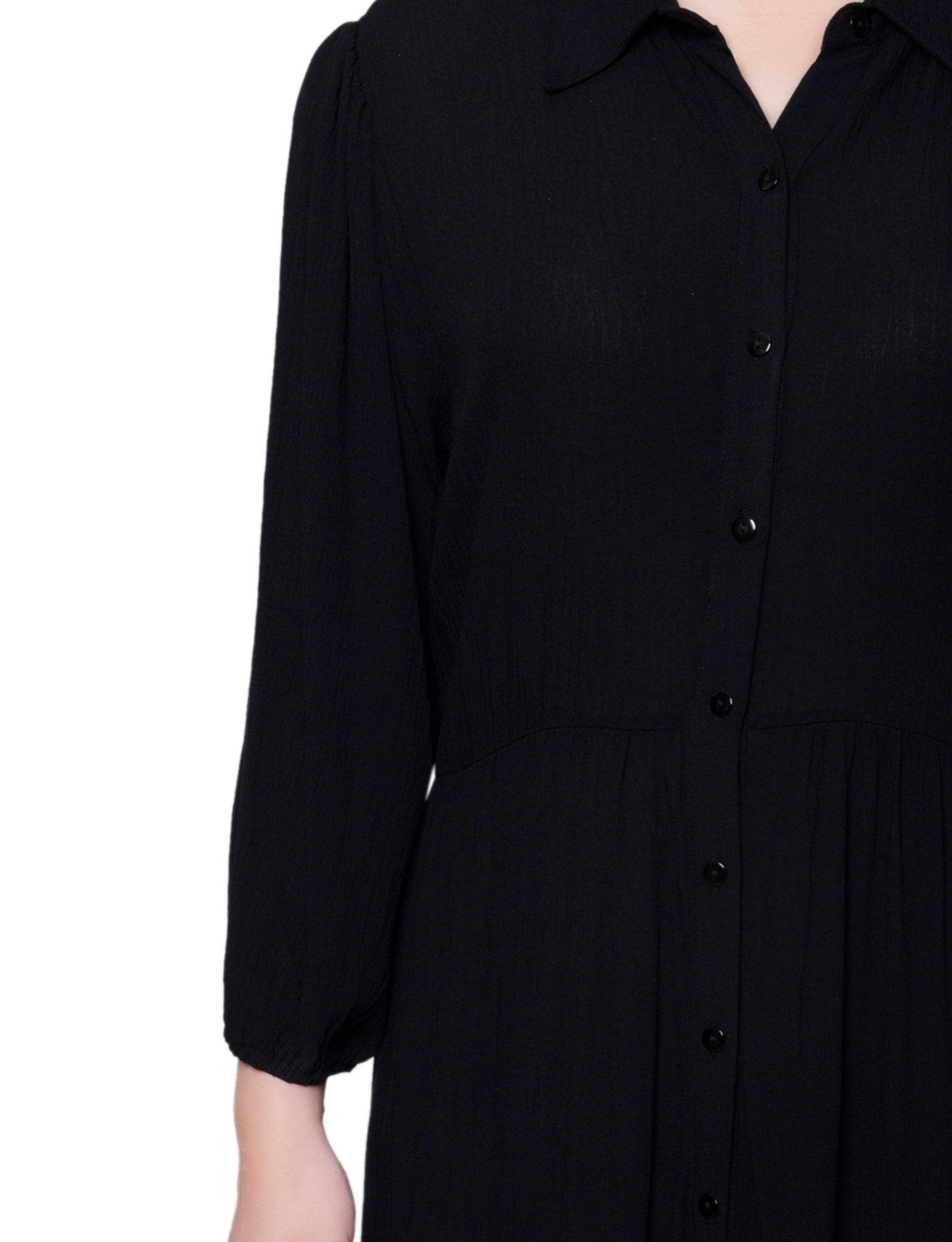 Black 3/4 Sleeve Crinkle Tiered Maxi Dress - Petite