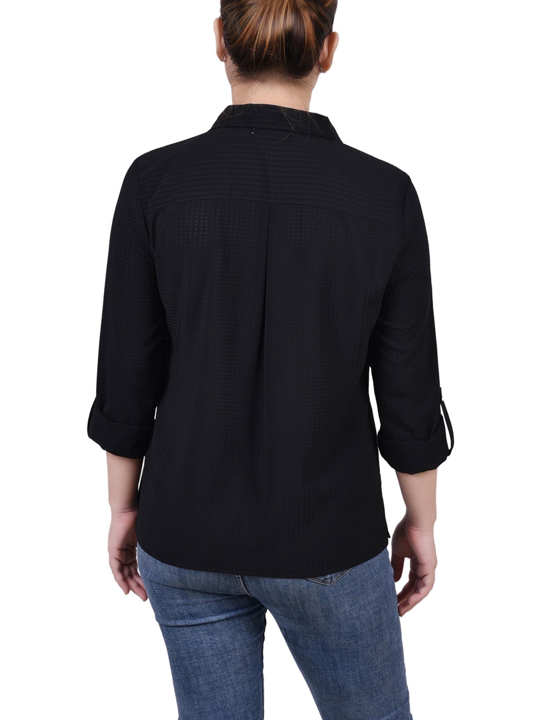 Black 3/4 Sleeve Button Front Blouse