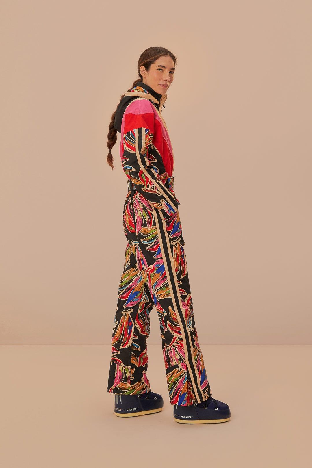 Escape into a world of bold expression with the Black Artsy Banana Ski Jumpsuit from FARM Rio. A captivating high neckline and the dynamic interplay of vibrant color blocks and whimsical banana artwork create an irresistible allure. This jumpsuit beckons with its free-flowing design that contours and moves with you, ensuring comfort and style on any adventure. Discover your playful side and stand out with confidence.Composition 100% POLYESTERCare Instructions MACHINE WASH GENTLE CYCLE, DO NOT BLEACH, DO NOT TUMBLE DRY, DRY FLAT, IRON AT LOW HEAT, DO NOT DRY CLEANSize and Fit Inches XXS XS S M L XL Bust 37 2/4 39 1/4 41 1/4 43 1/4 46 2/4 49 2/4 Waist 28 30 32 33 3/4 37 40 1/4 Length 58 1/4 59 2/4 60 3/4 61 3/4 63 64 1/4 Hip 38 1/4 40 1/4 42 1/4 44 50 2/4 50 2/4