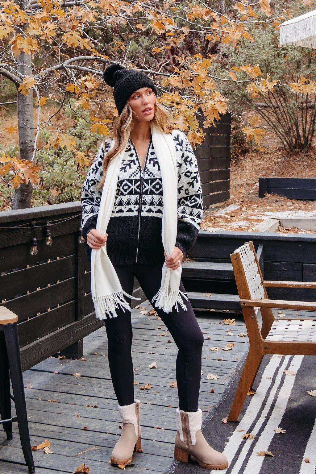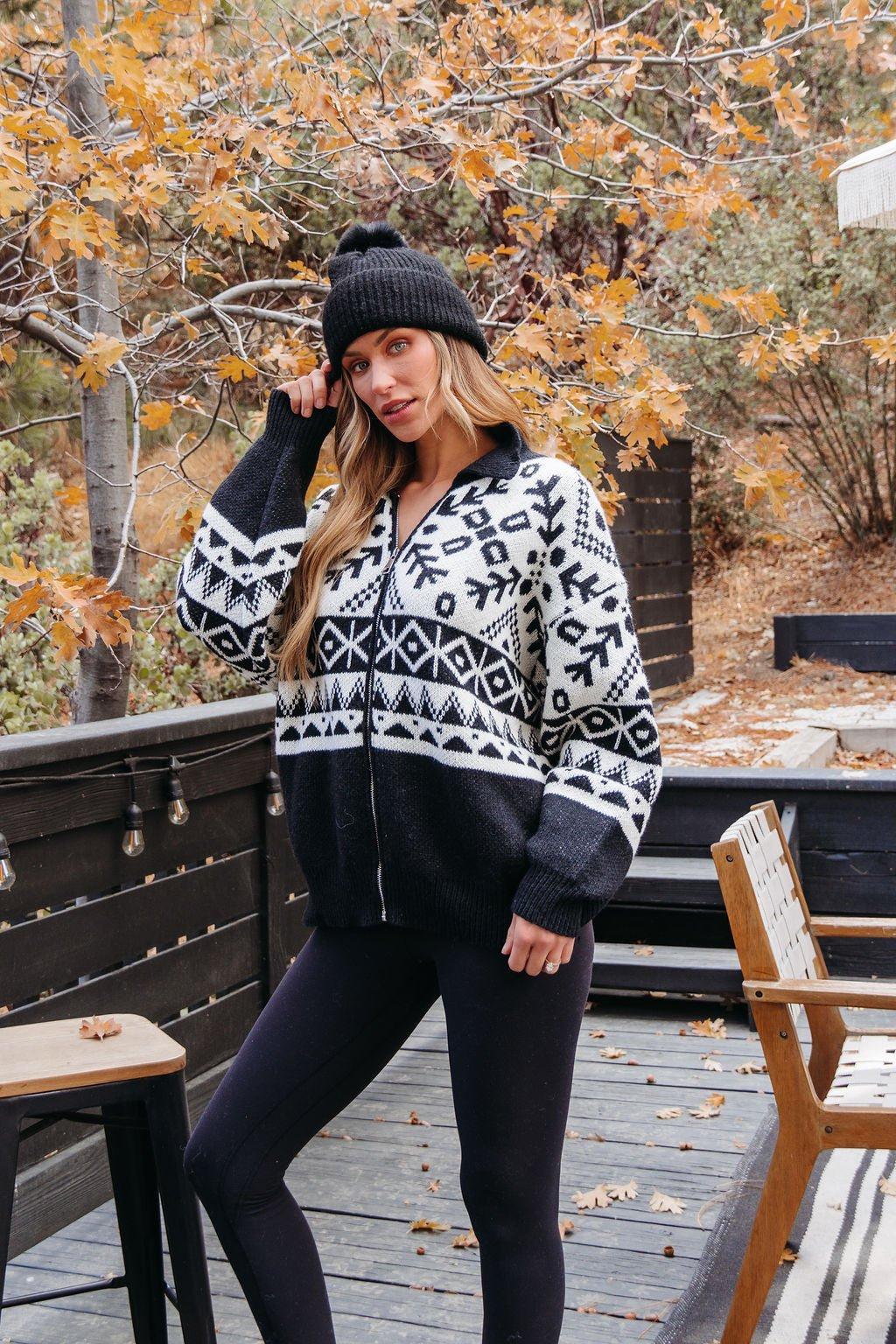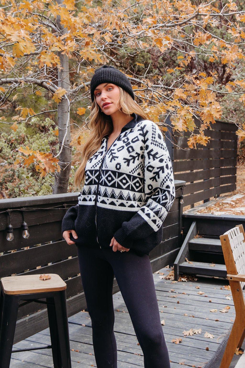 This everyday lounge wear essential is designed for both coziness and style, making it your new favorite go-to for laid-back days or casual outings! Features long sleeves, a collared V neckline, a zip-up front closure, and an allover aztec print design that is perfect for adding some personality to your look. Pair with high-waisted jeans and sneakers for a relaxed yet chic outfit. Layer over a basic tee with soft joggers and fuzzy slippers for cozy comfort at home.