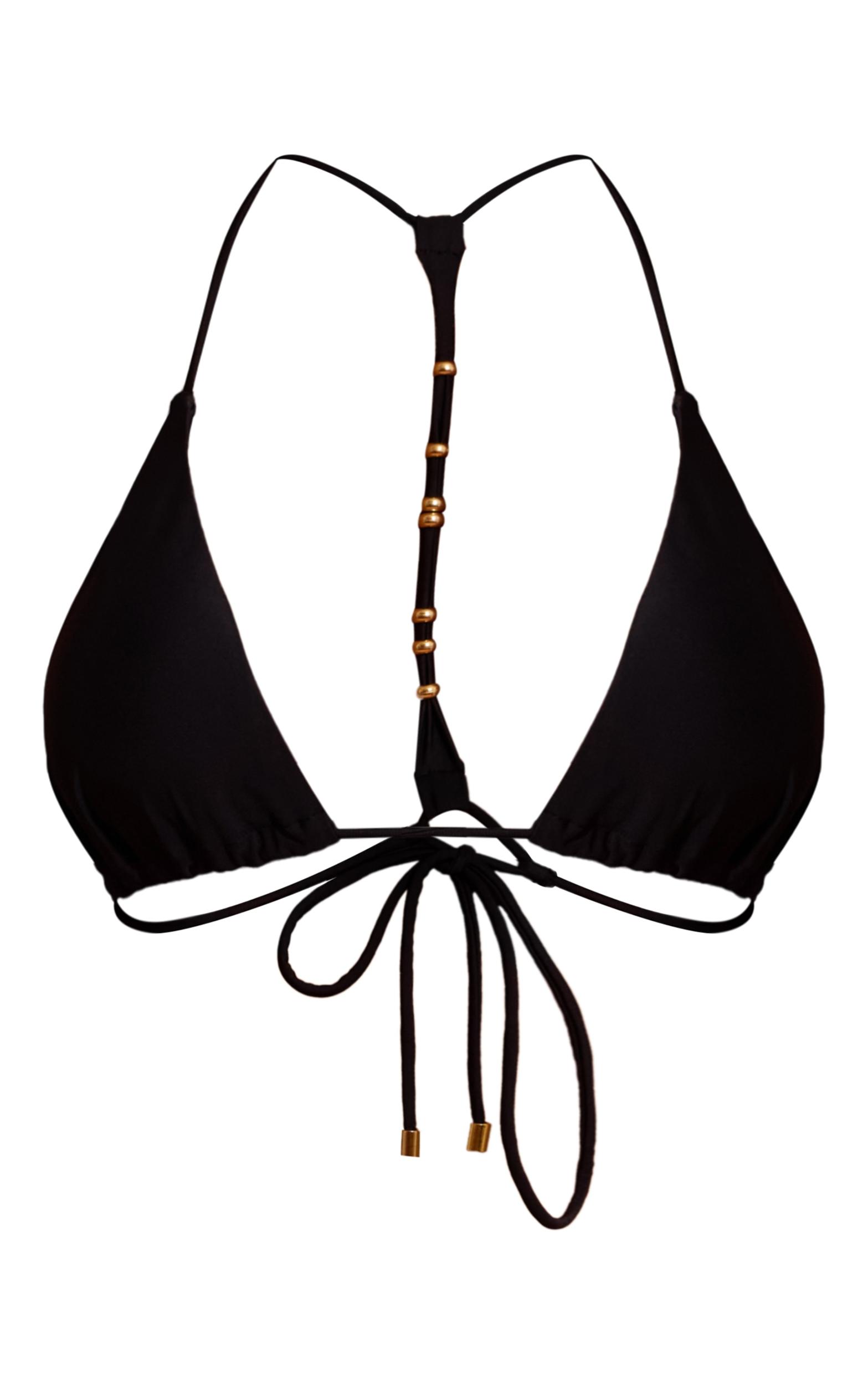 Own the moment in this black bead detail triangle bikini top. Made from black fabric, this top has a classic triangle fit, tie fastenings and bead detailing at the back. Style it with the matching bottoms and sandals for a flawless finish.Length approx 29cm/11.5inch (Based on sample size US 4)Model wears size UK 8/ EU 36/ AUS 8/ US 4Model Height - 5ft 6inchp]:!mb-4inch>Brand: PrettyLittleThingCategory: SwimwearProduct type: Triangle Bikini TopColor: BlackMaterial: SwimOccasion: Day