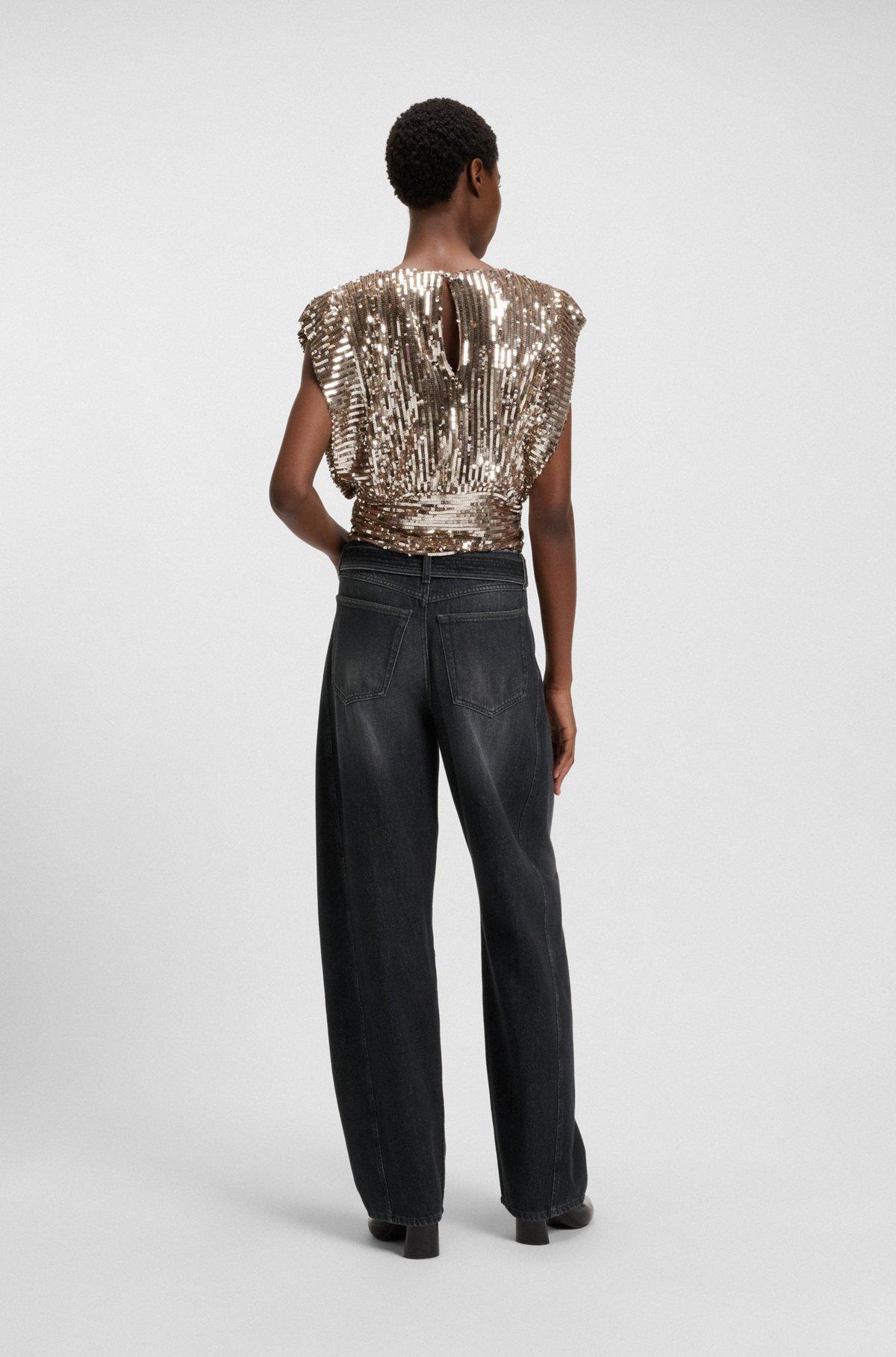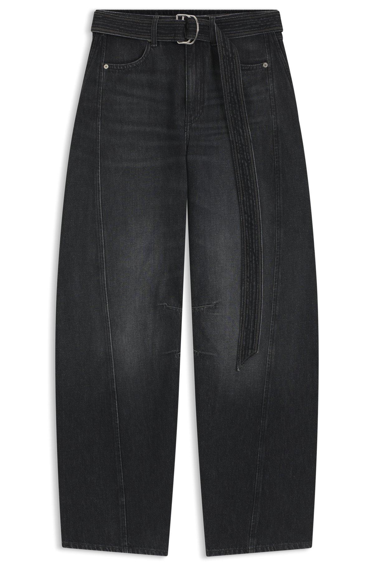 Black balloon-leg jeans in rigid denim